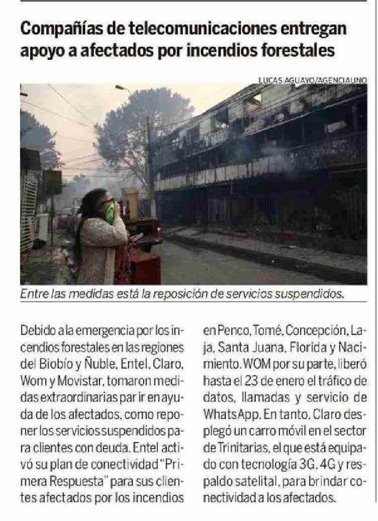 Título: Compañías de telecomunicaciones entregan apoyo a afectados por incendios forestales