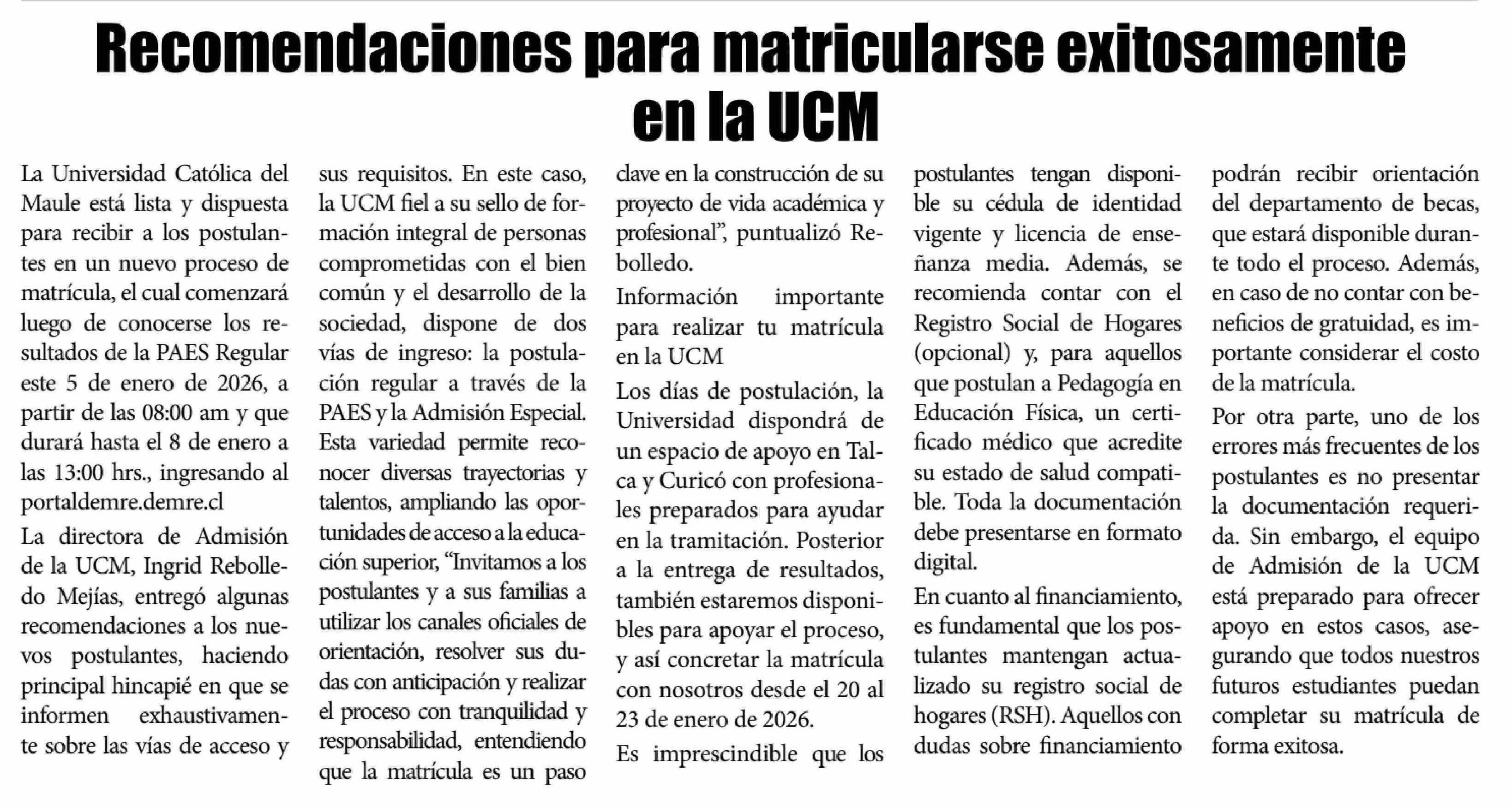 | Fecha: | 06-01-2026 | Sector: | Noticia general | Región: | Región del Maule |