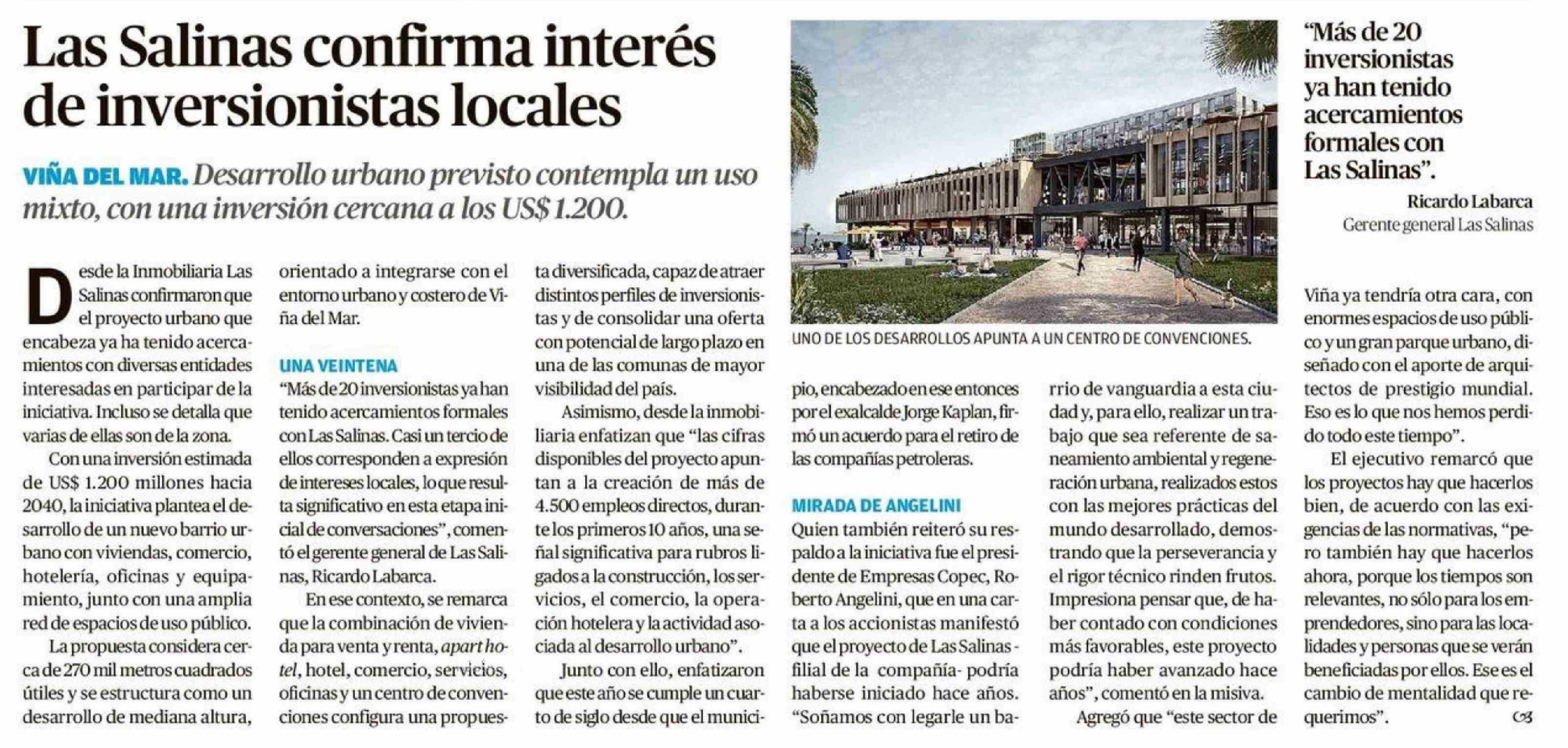 Las Salinas confirma interés de inversionistas locales 21-04-2026 El Mercurio de Valparaíso |