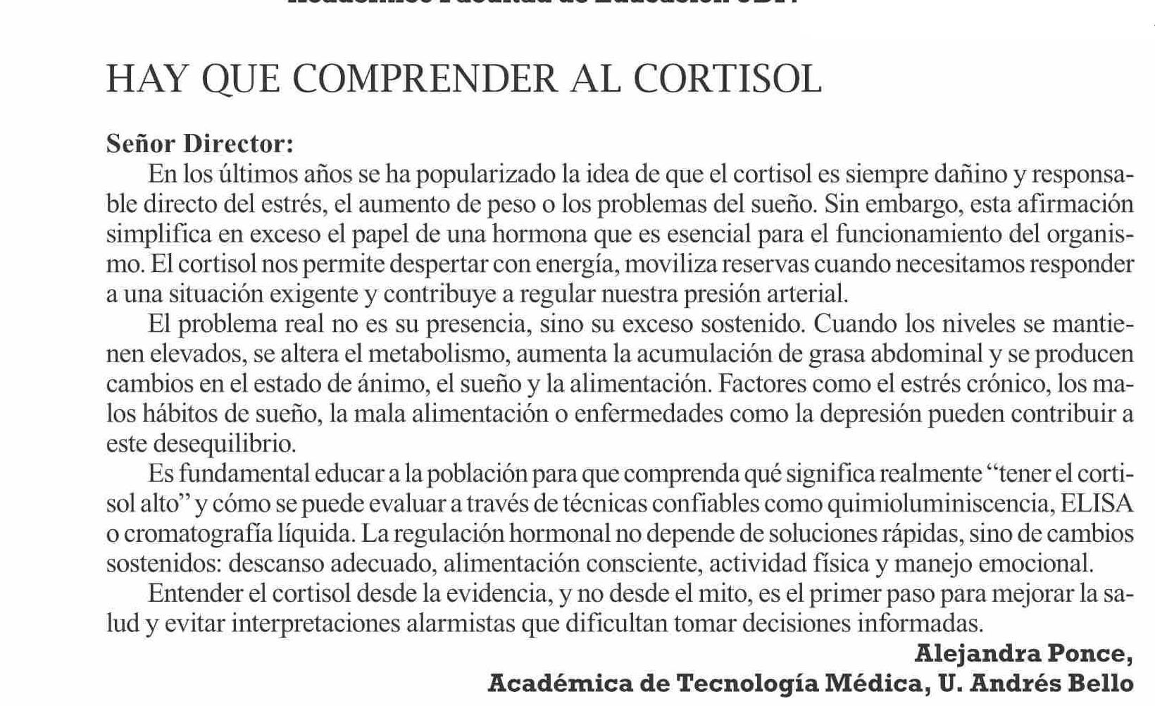 Título: HAY QUE COMPRENDER AL CORTISOL