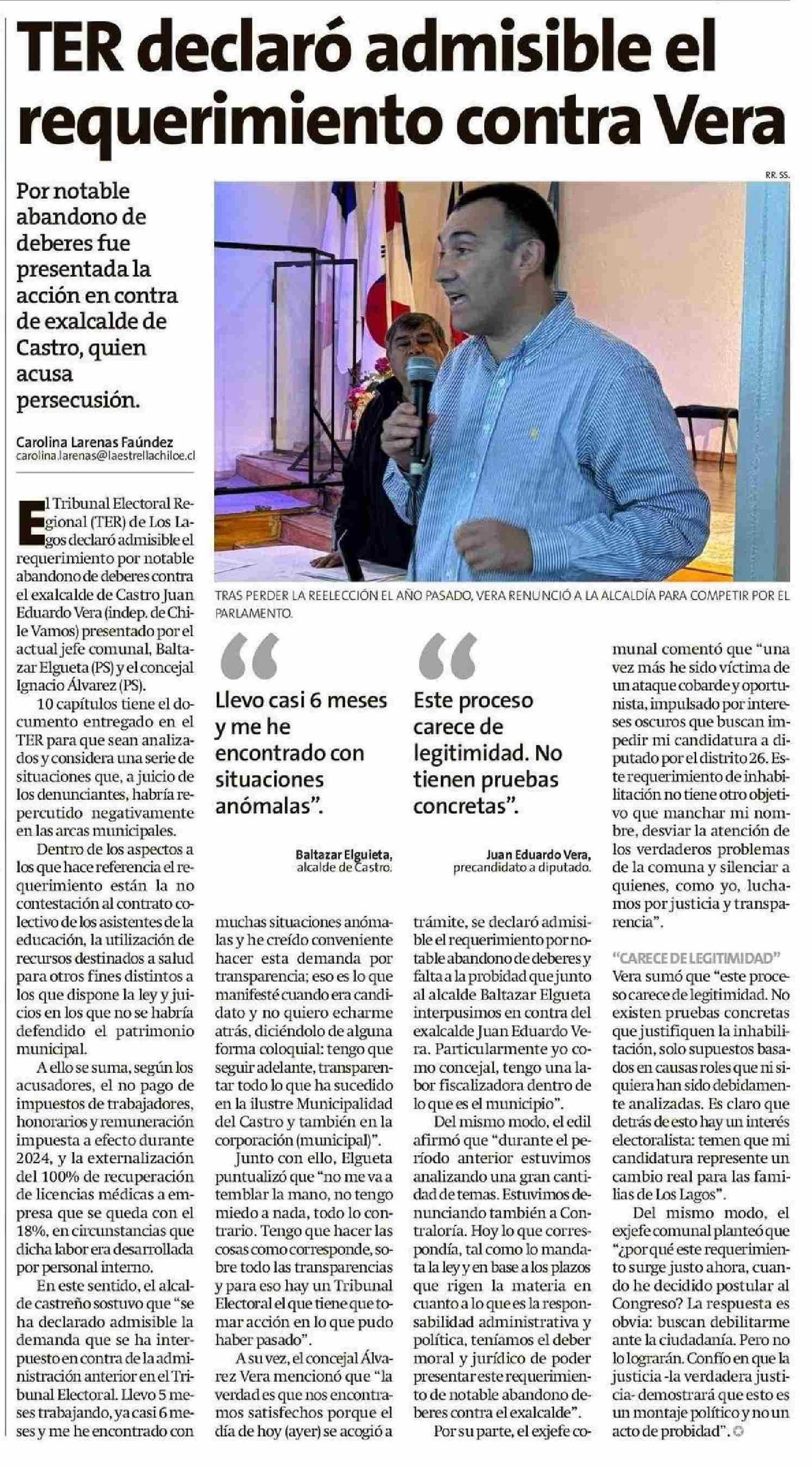 TER declaró admisible el requerimiento contra Vera 28-05-2025 La Estrella de Chiloé |