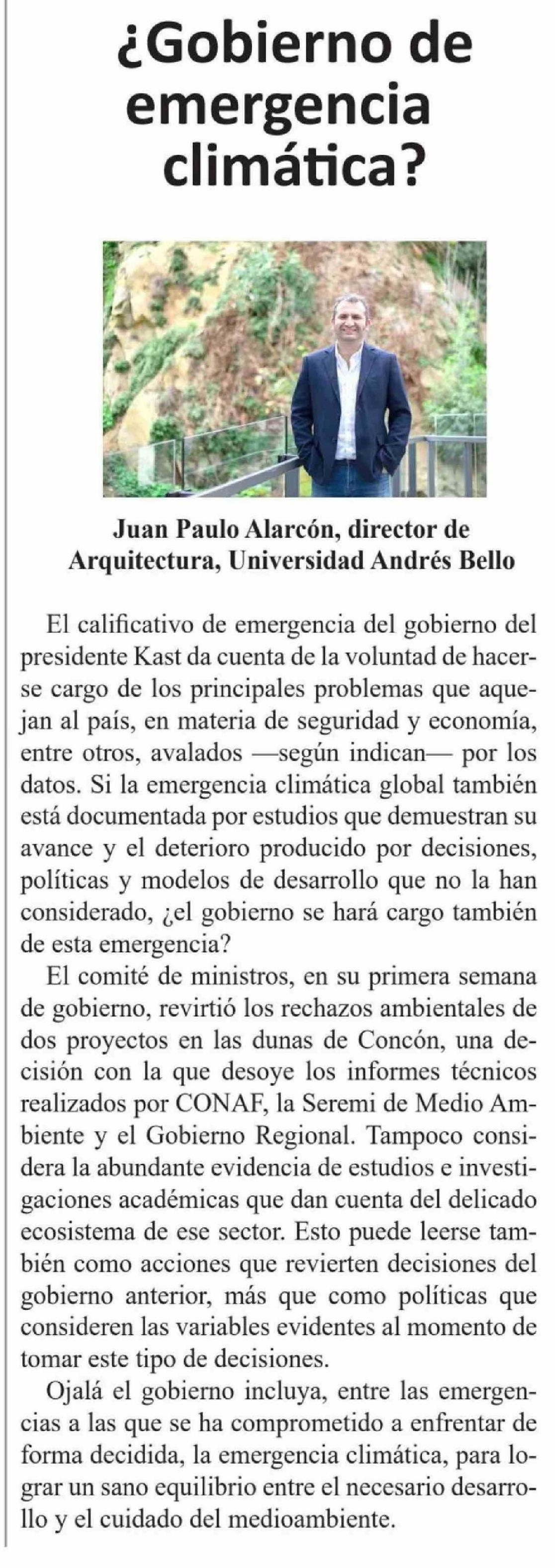 | Título: | Columnas de Opinión: ¿Gobierno de emergencia climática? |