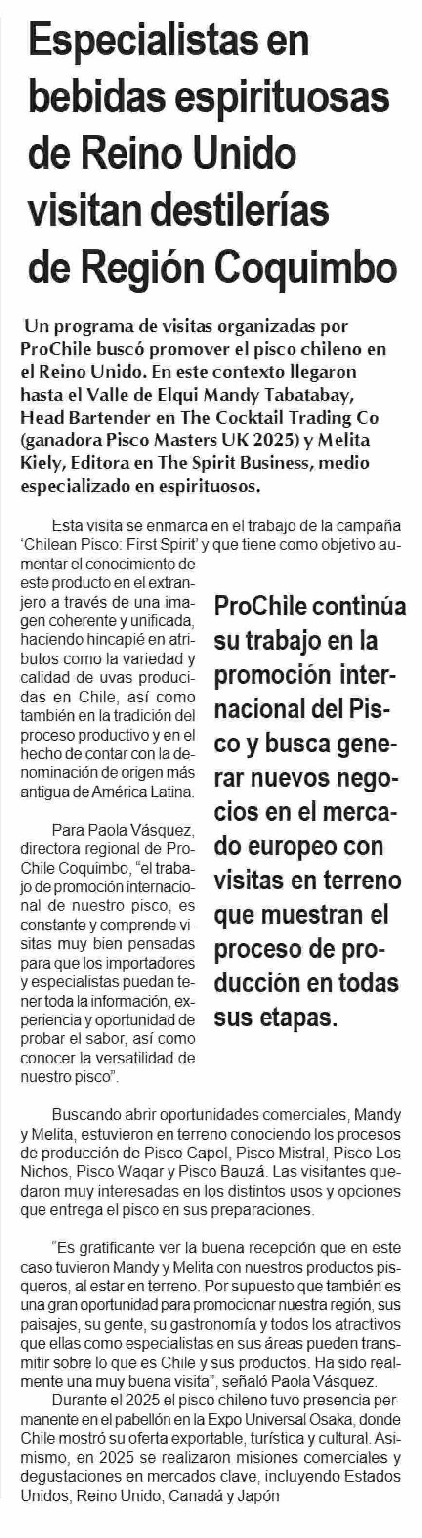 Especialistas en bebidas espirituosas de Reino Unido visitan destilerías de Región Coquimbo 18-01-2026 Diario la Región |