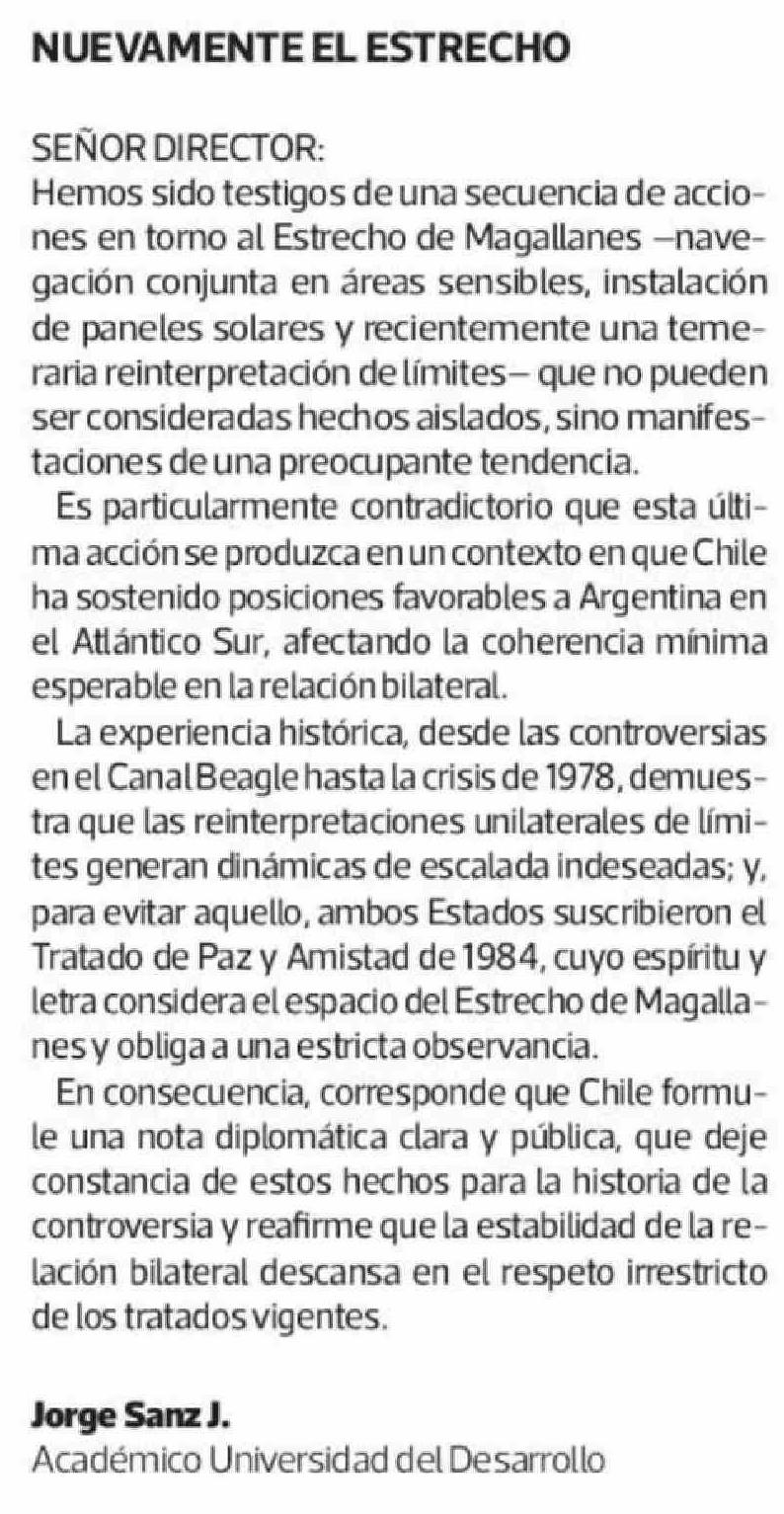 CARTAS: NUEVAMENTE EL ESTRECHO 20-04-2026 La Tercera |