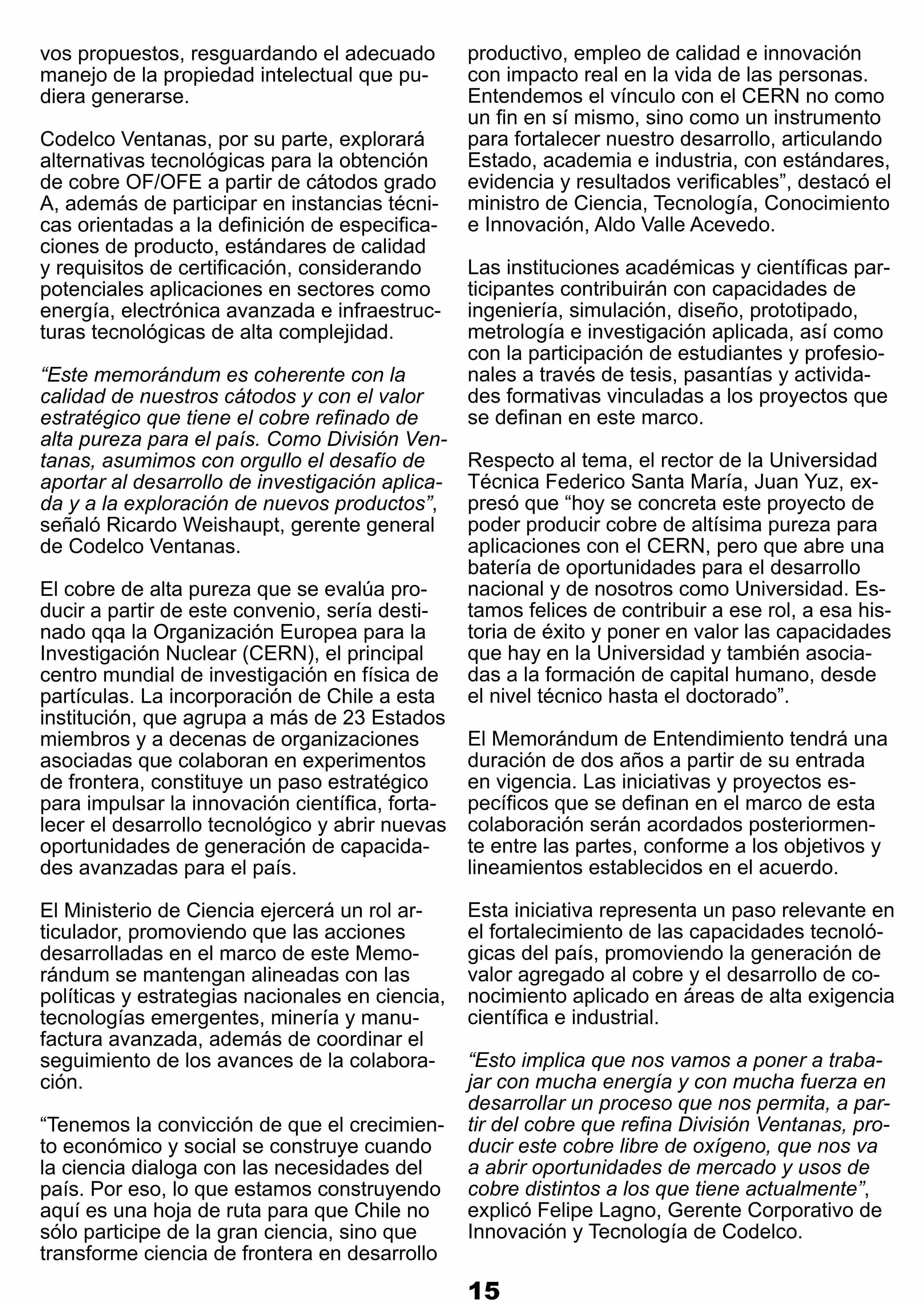 | Título: | Codelco, Ministerio de Ciencia y universidades firman Memorándum de Entendimiento para avanzar en el desarrollo de cobre de alta pureza |