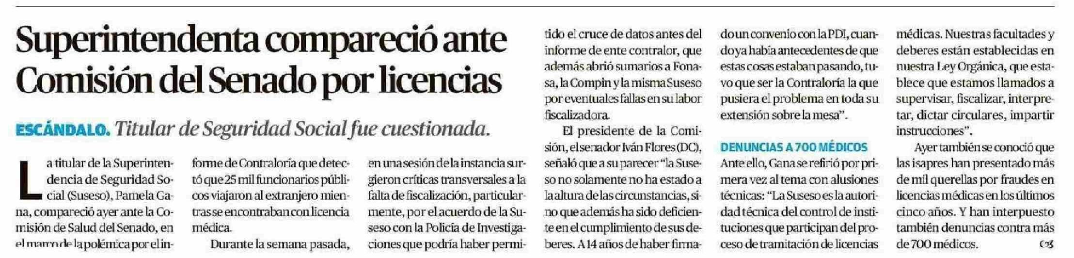 Título: Superintendenta compareció ante Comisión del Senado por licencias