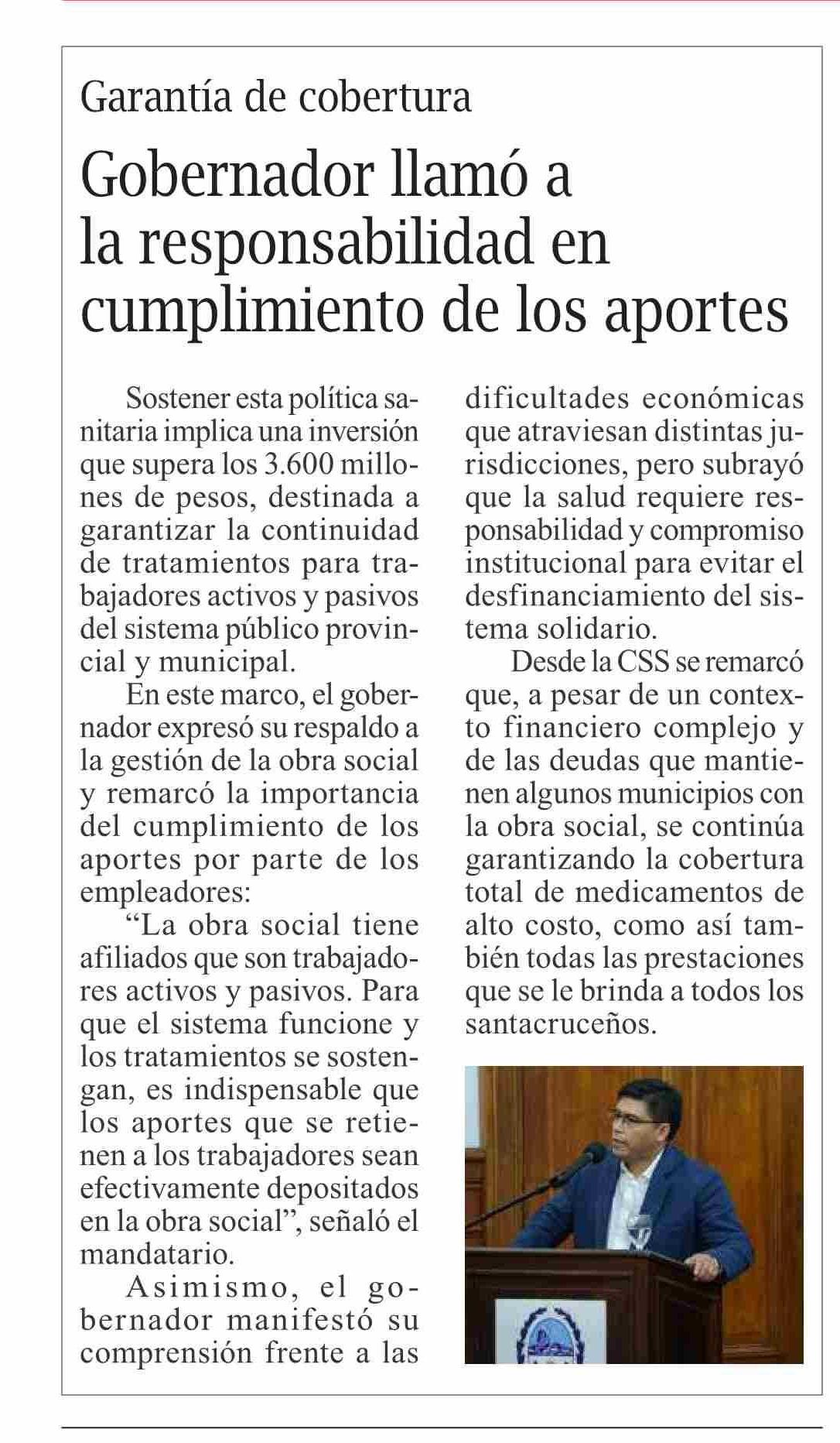 Título: Gobernador llamó a la responsabilidad en cumplimiento de los aportes
