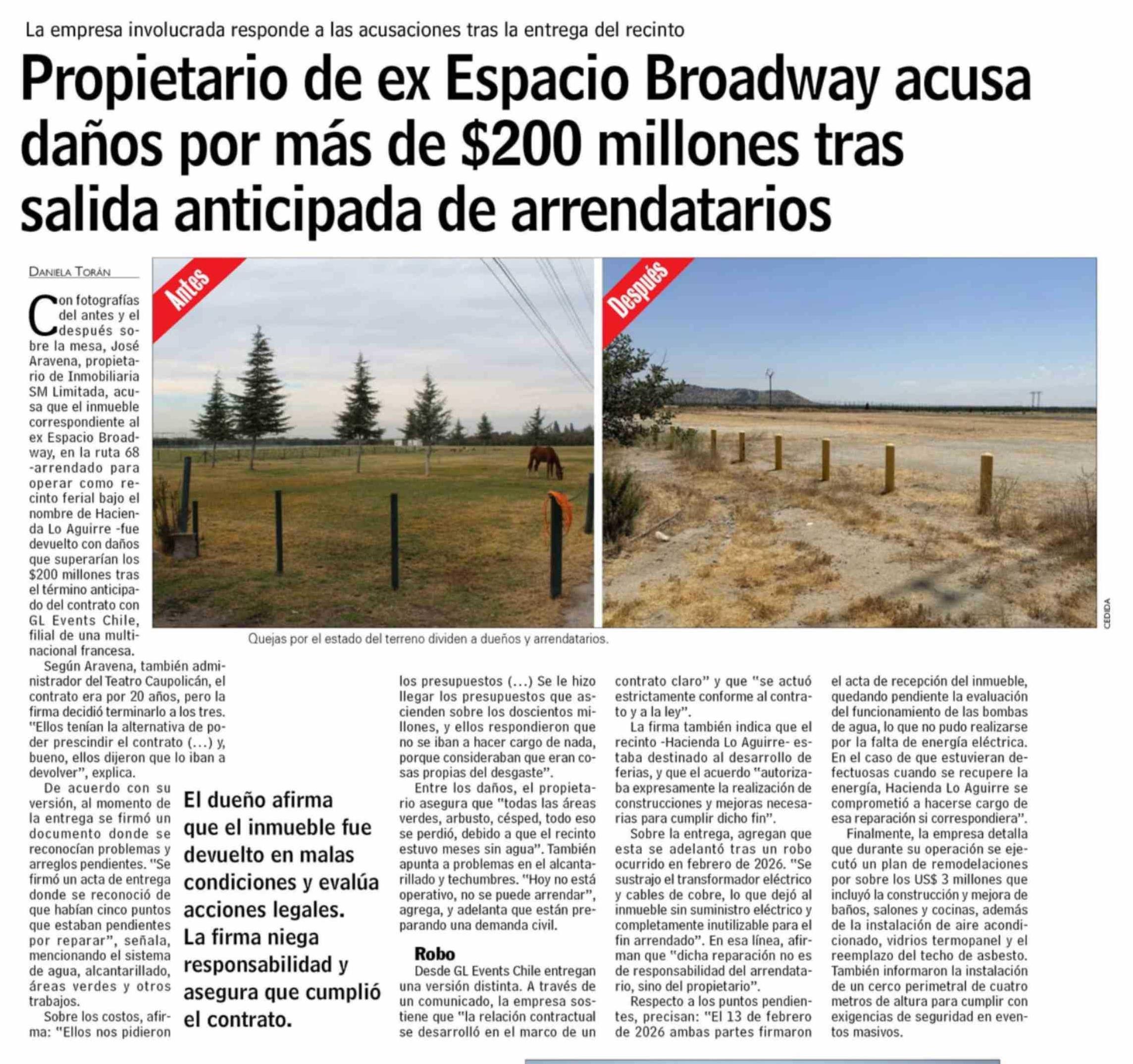 Título: Propietario de ex Espacio Broadway acusa daños por más de $200 millones tras salida anticipada de arrendatarios