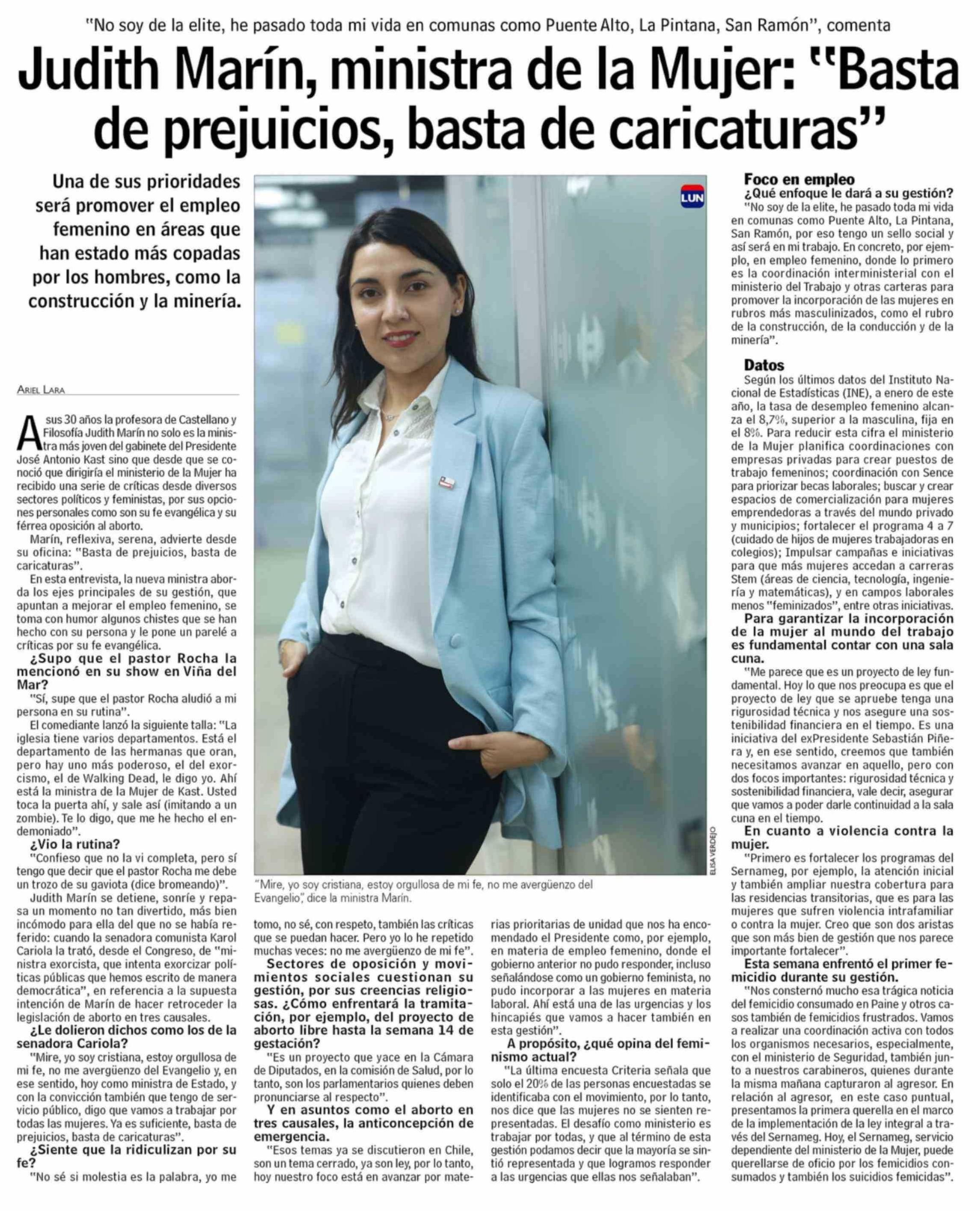 Judith Marín, ministra de la Mujer: "Basta de prejuicios, basta de caricaturas" 22-03-2026 Las Últimas Noticias |