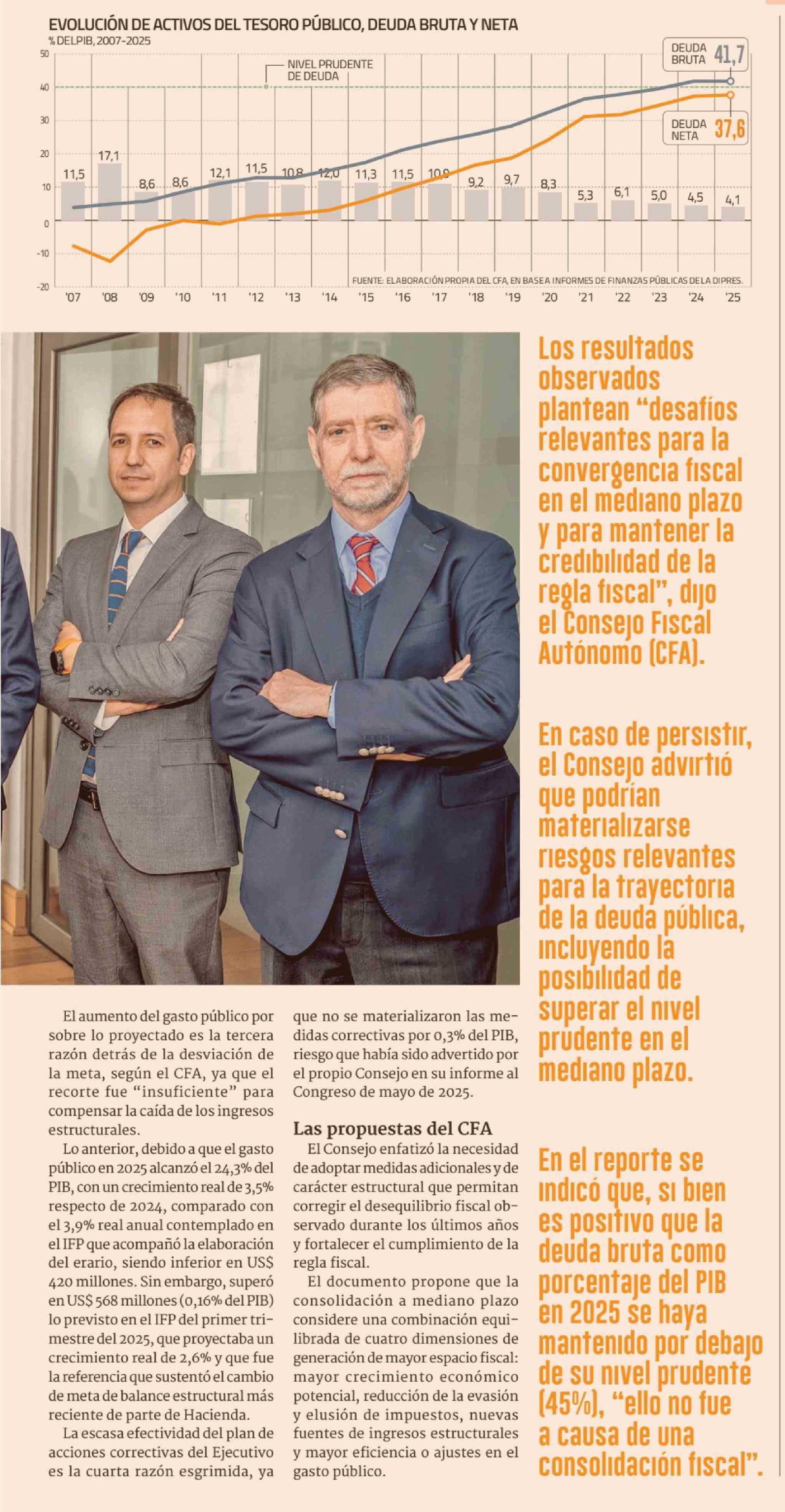 CFA alerta por "errores reiterados y significativos' en proyecciones de ingresos y credibilidad de la meta fiscal 05-03-2026 Diario Financiero |