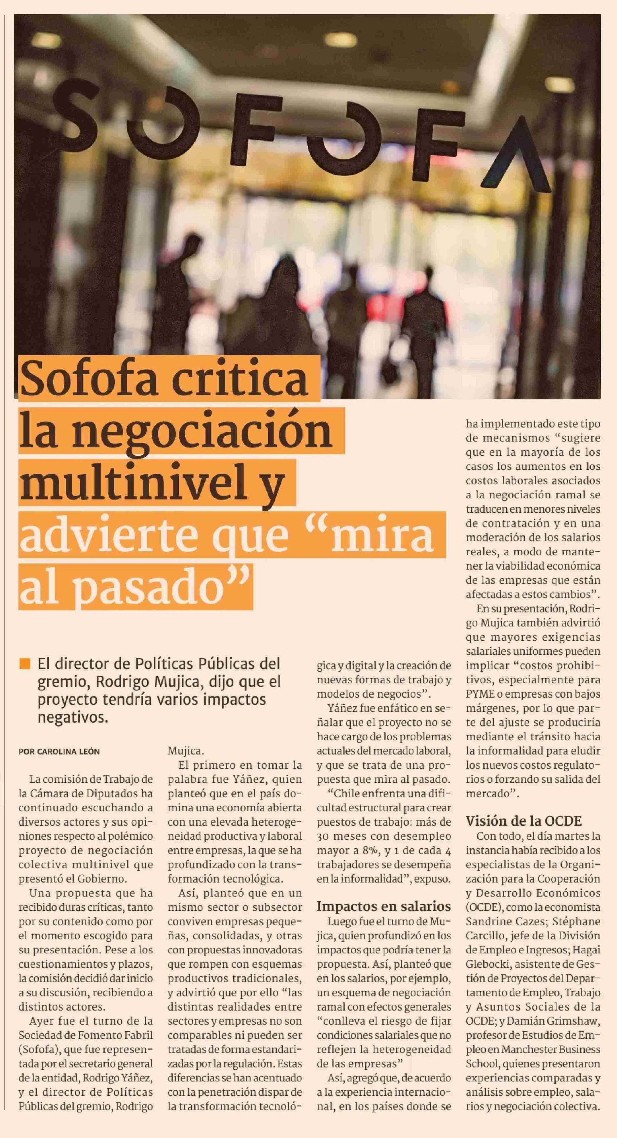 Título: Sofofa critica la negociación multinivel y advierte que "mira al pasado"