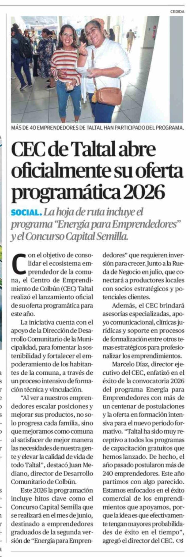 CEC de Taltal abre oficialmente su oferta programática 2026 06-04-2026 El Mercurio de Antofagasta |