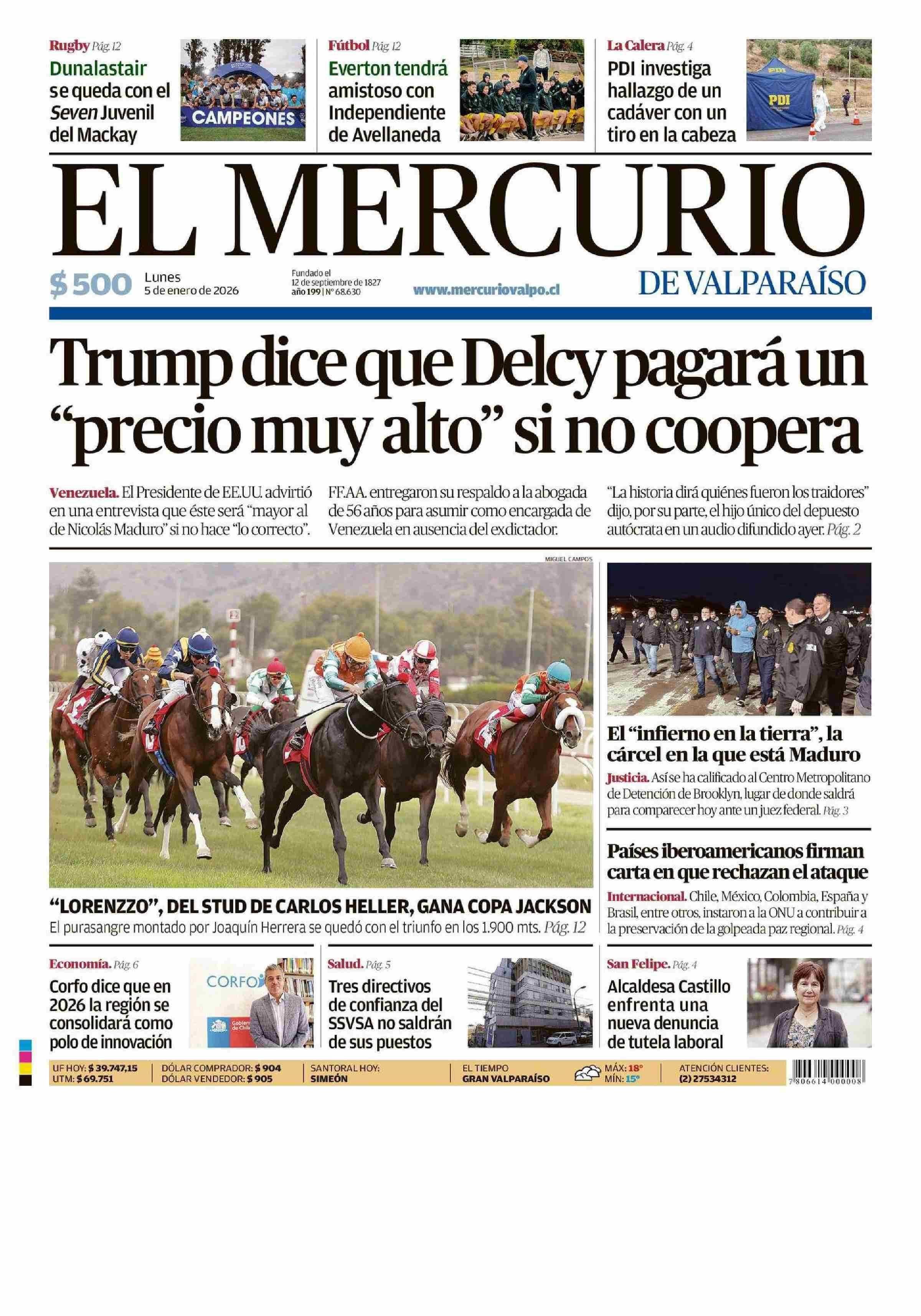 PORTADA EL MERCURIO DE VALPARAÍSO CHILE 05-01-2026 El Mercurio de Valparaíso |