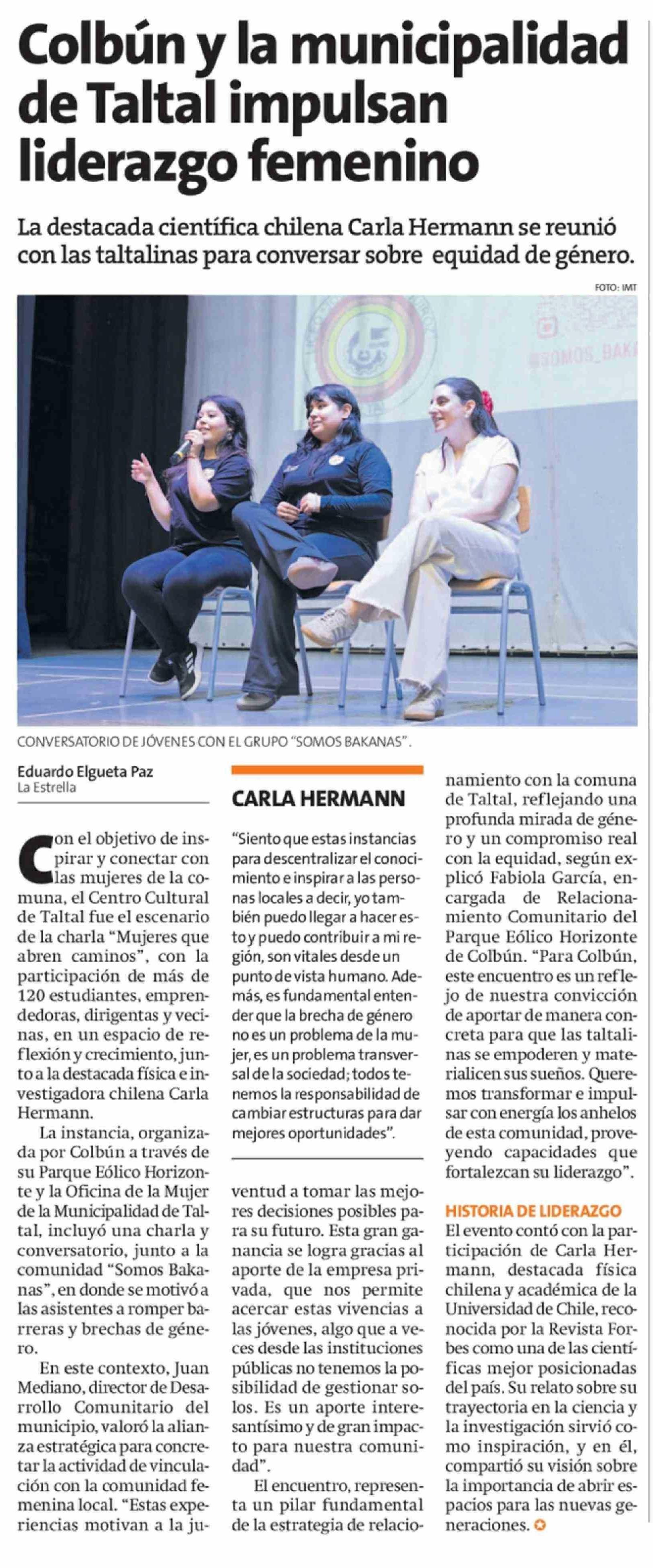 Título: Colbún y la municipalidad de Taltal impulsan liderazgo femenino