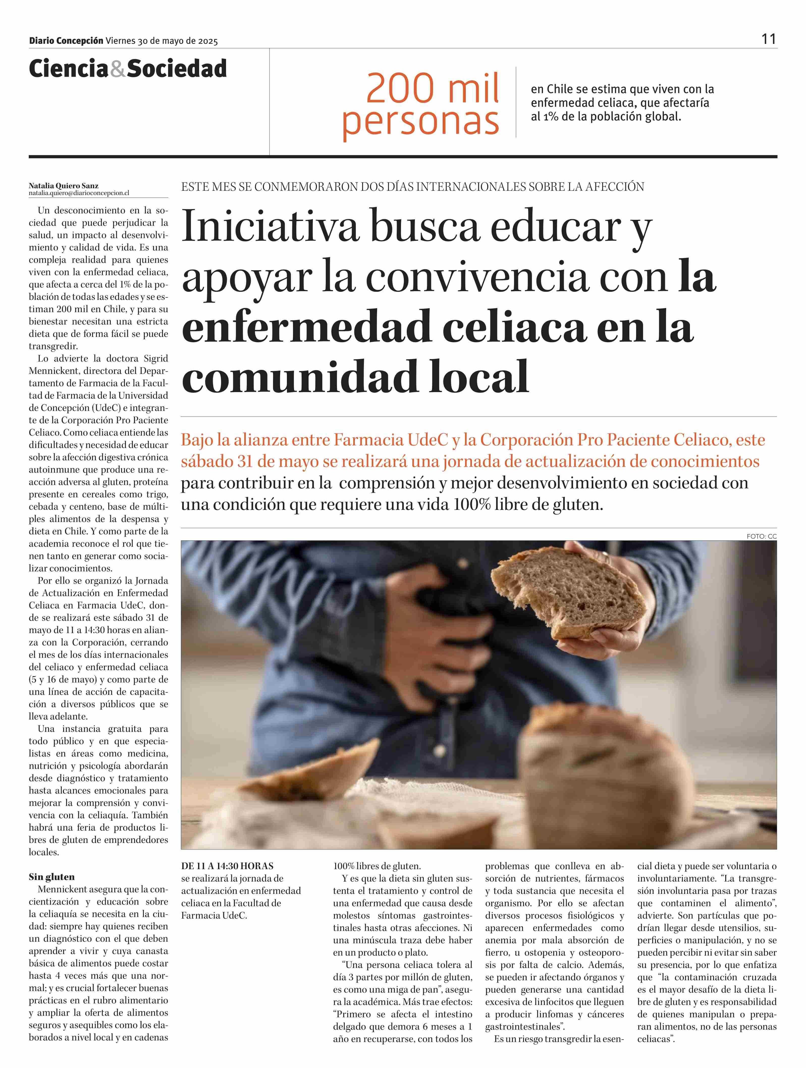 Iniciativa busca educar y apoyar la convivencia con la enfermedad celiaca en la comunidad local 30-05-2025 Diario Concepción |