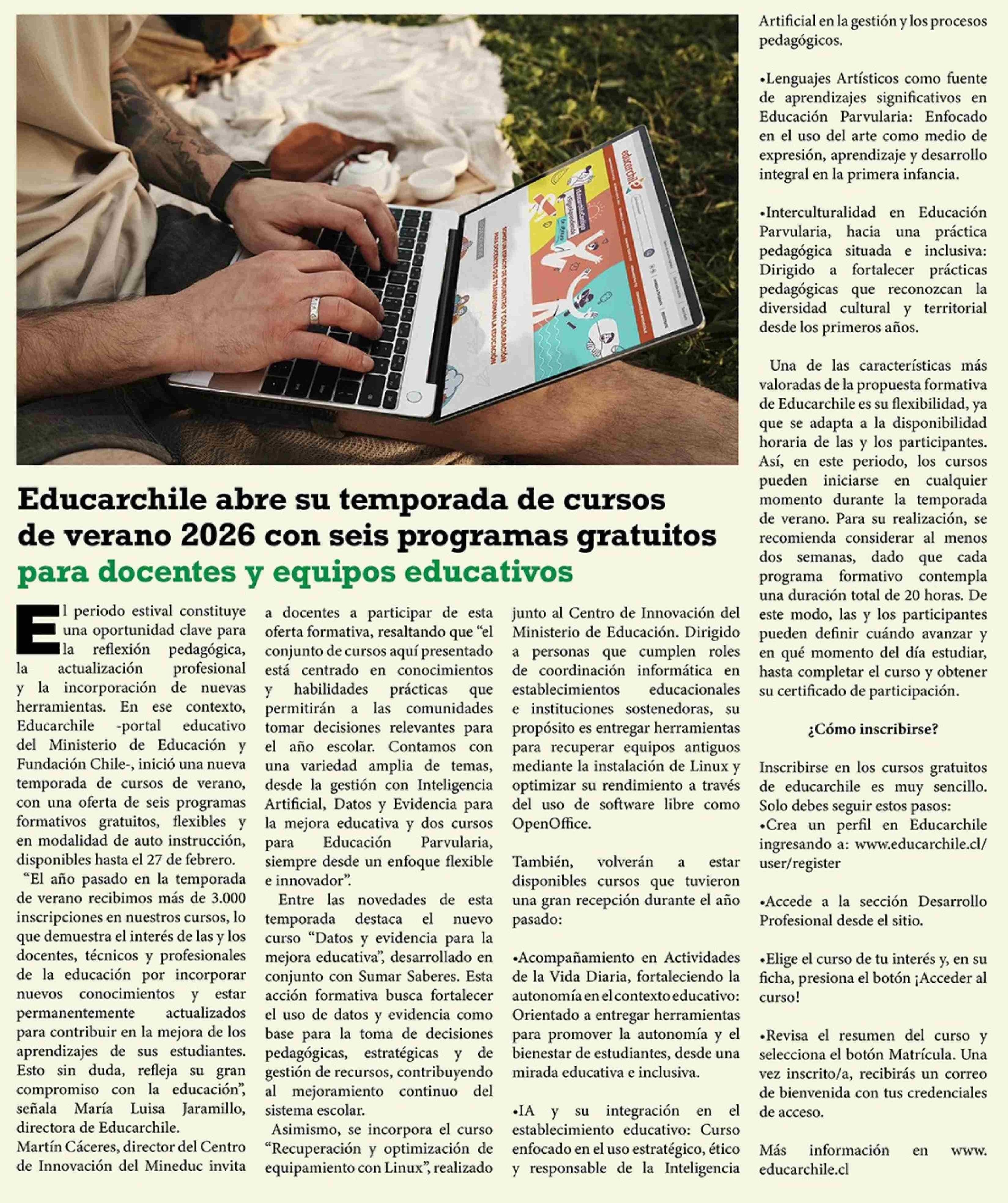| Título: | Educarchile abre su temporada de cursos de verano 2026 con seis programas gratuitos para docentes y equipos educativos |