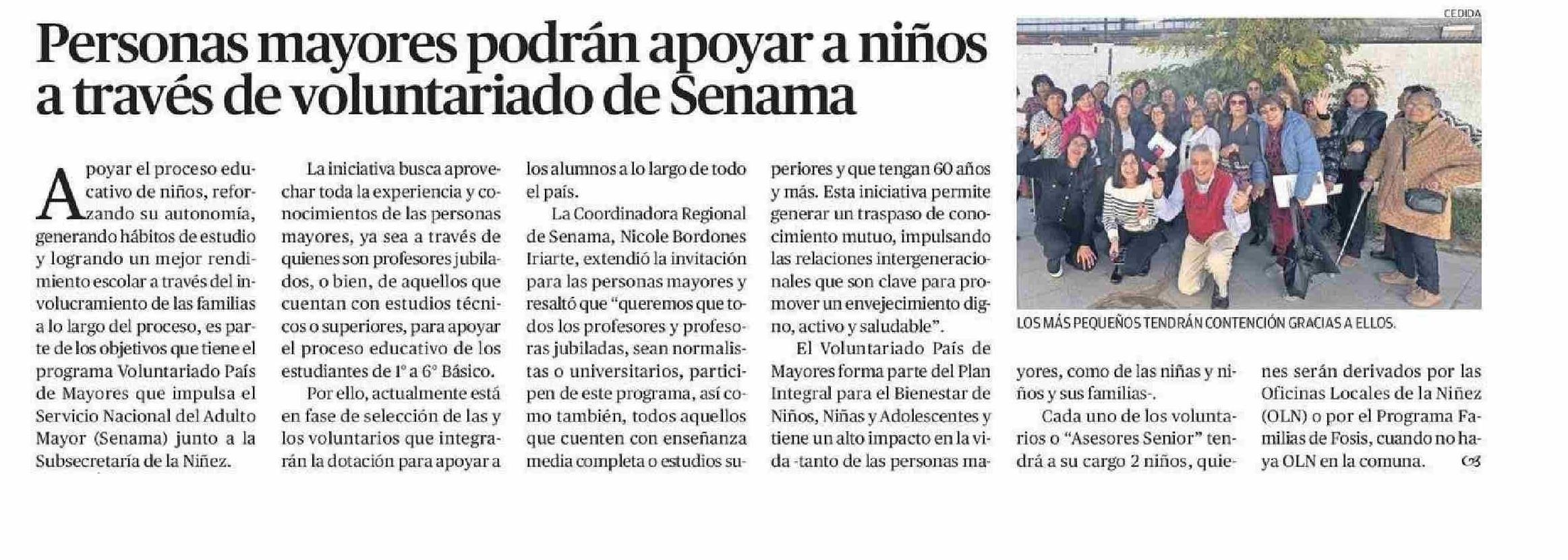 Personas mayores podrán apoyar a niños a través de voluntariado de Senama 01-06-2025 El Diario de Atacama |