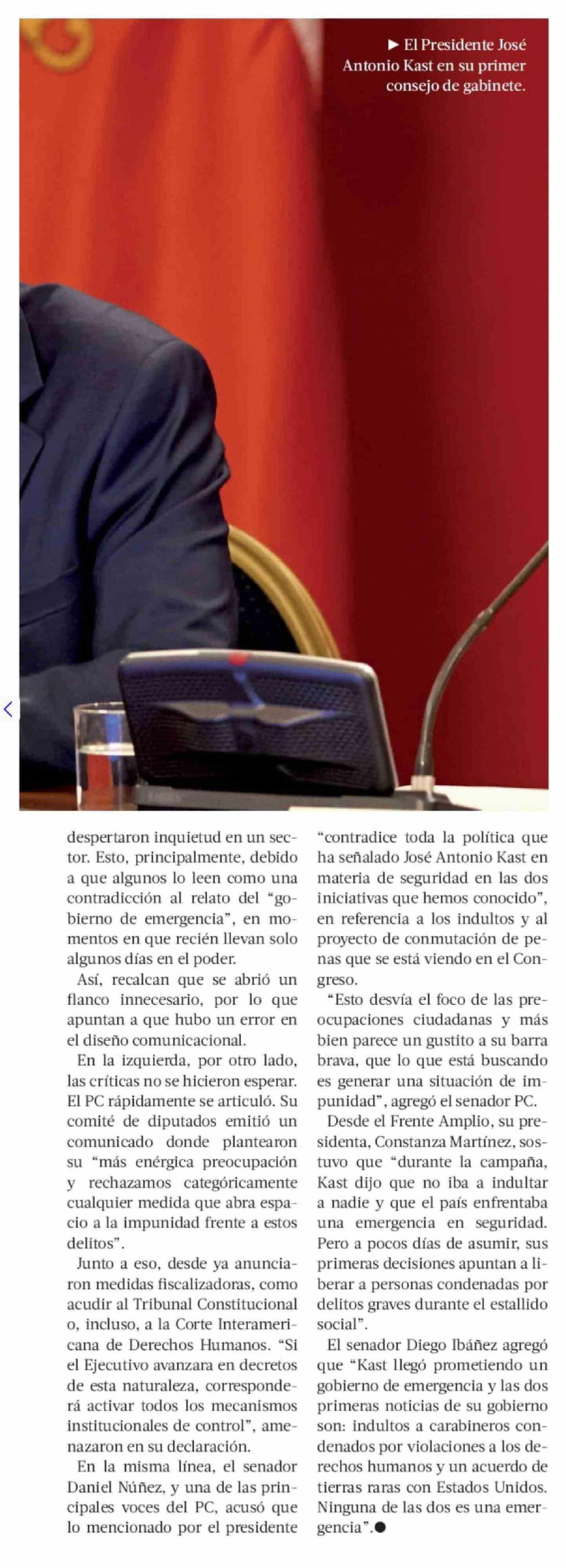 | Título: | Kast instala en agenda posibilidad de indultar y abre flanco en su "gobierno de emergencia" |