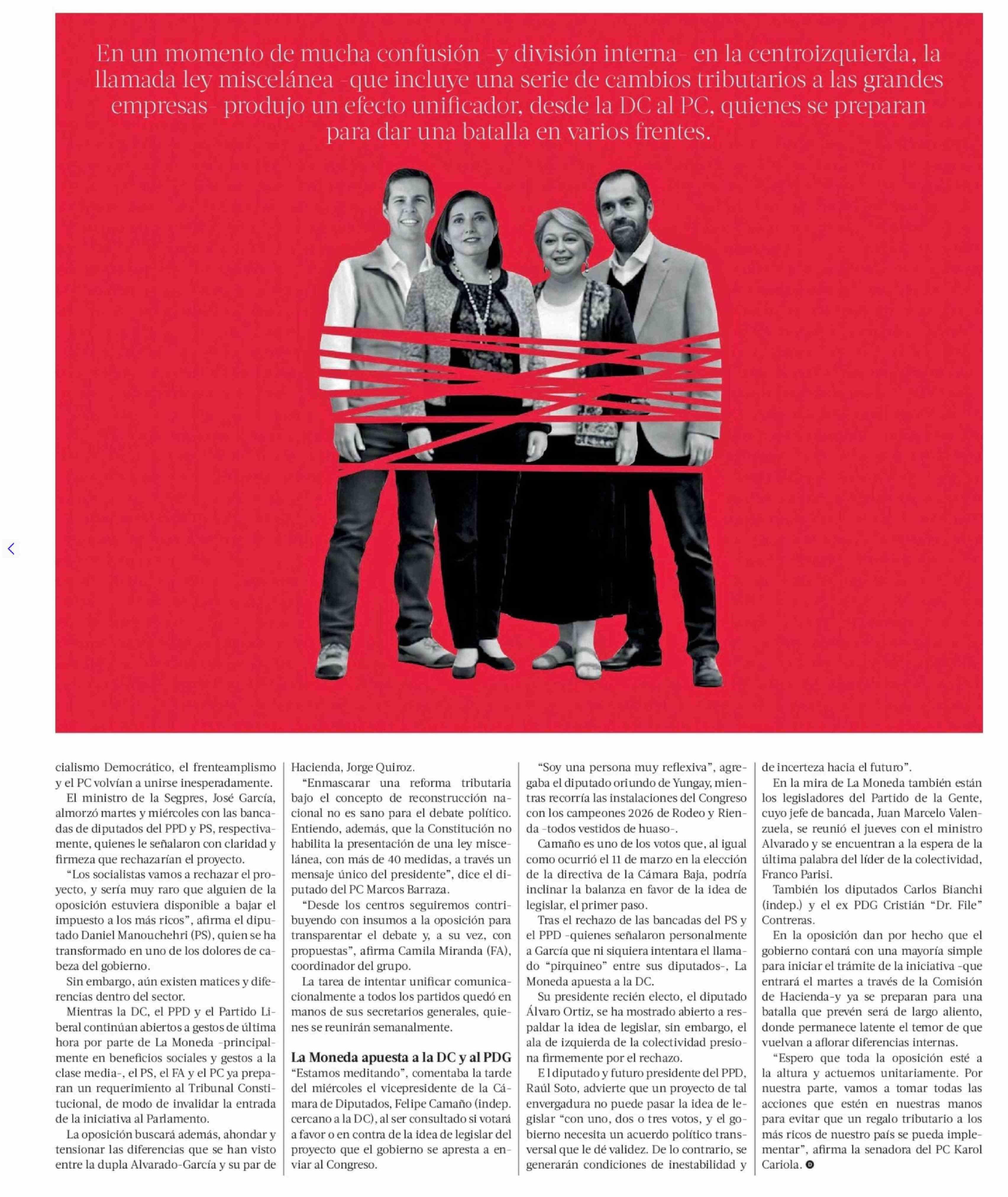 El forzado rearme de la oposición tras la ley de reconstrucción de Kast 19-04-2026 La Tercera |