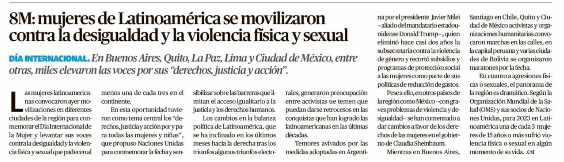 Título: 8M: mujeres de Latinoamérica se movilizaron contra la desigualdad y la violencia fisica y sexual