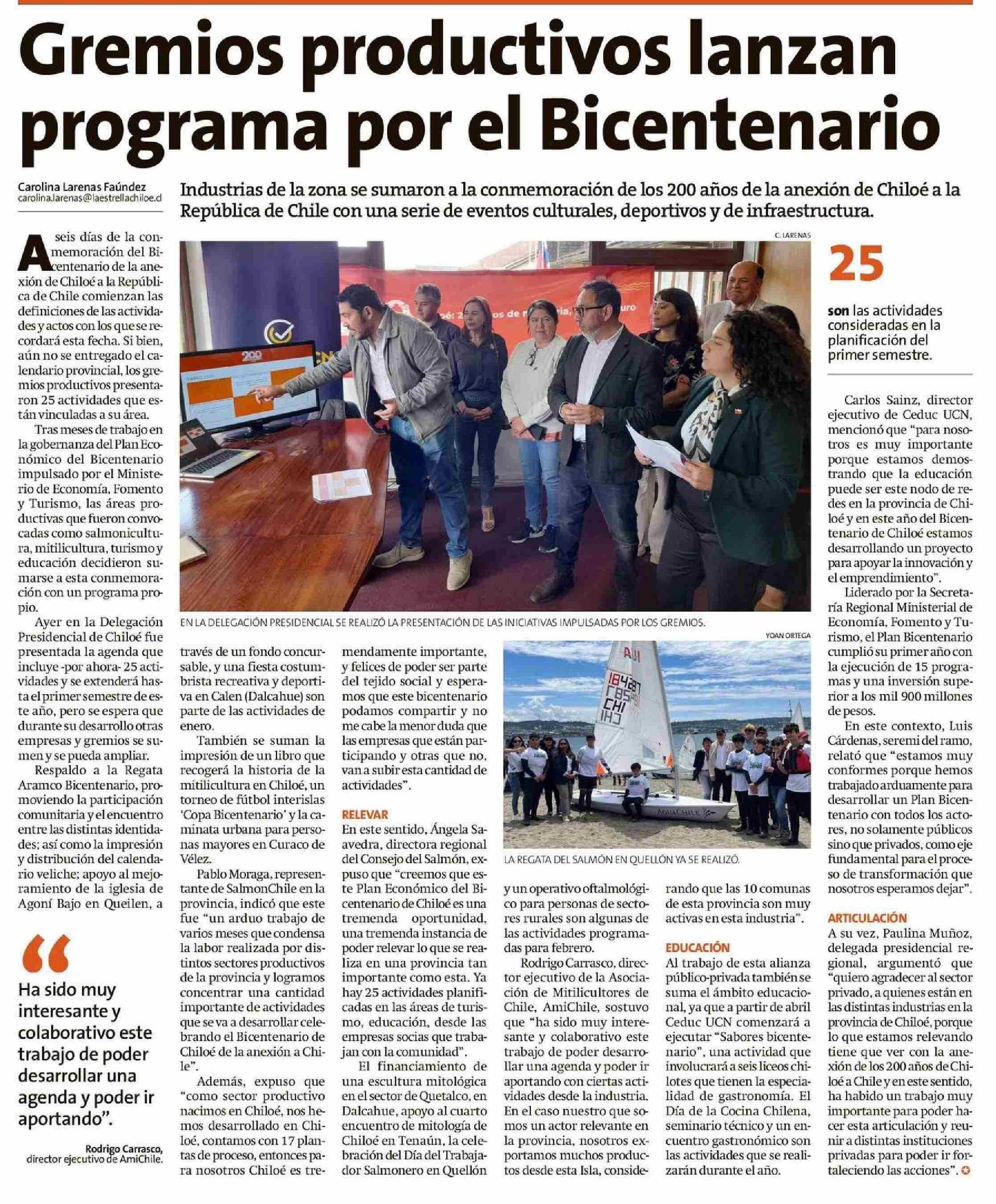 Gremios productivos lanzan programa por el Bicentenario 14-01-2026 La Estrella de Chiloé |
