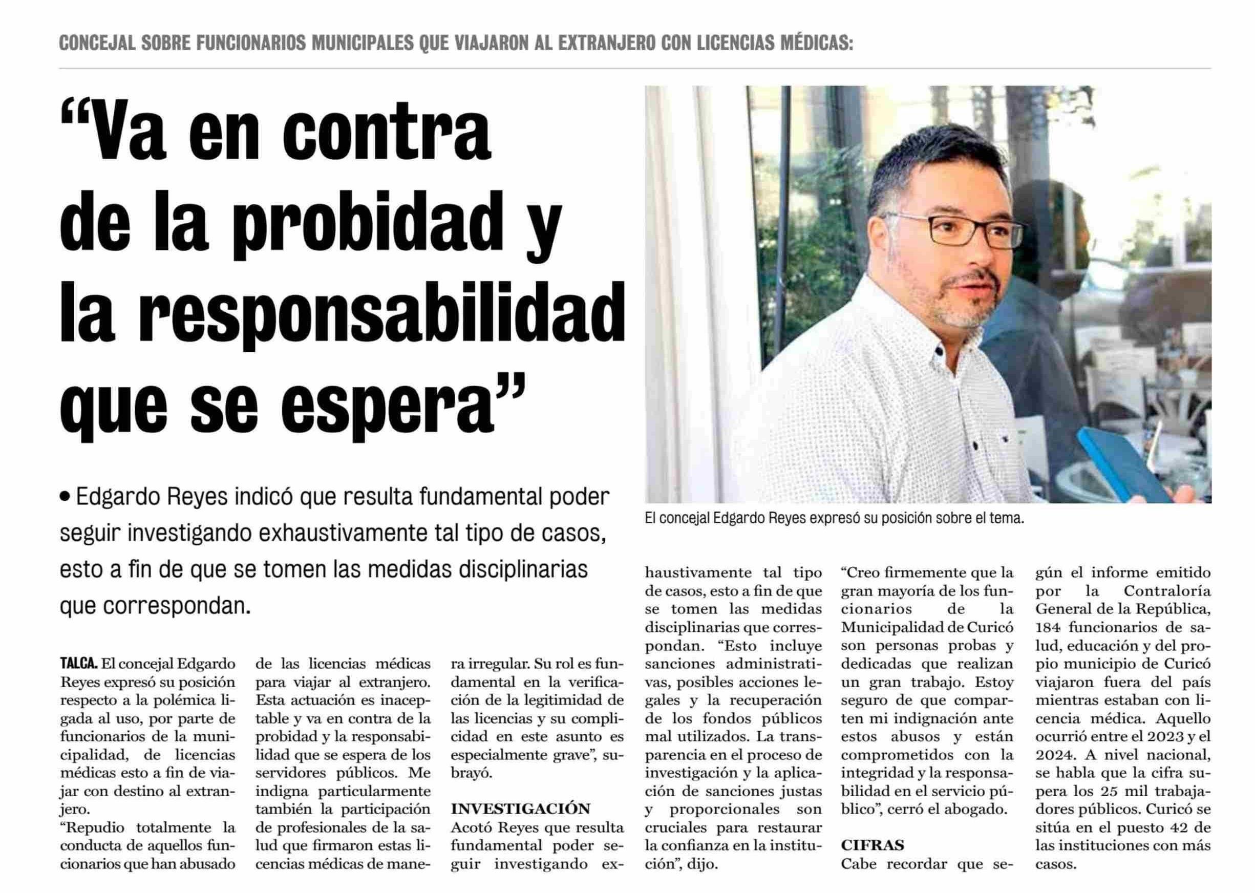 “Va en contra de la probidad y la responsabilidad que se espera” 28-05-2025 La Prensa de Curicó |
