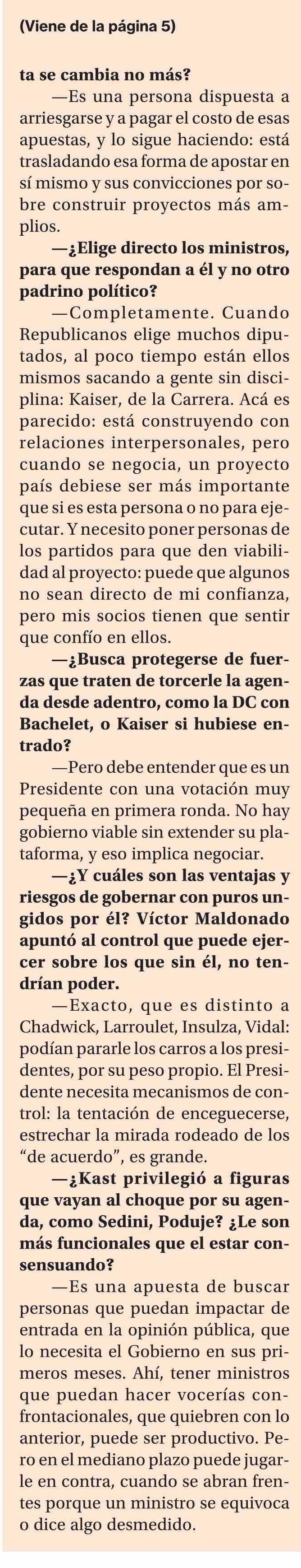 Varela, Golborne, Merino y Morandé reconocen los riesgos de ser ministro "novato en política" 21-01-2026 La Segunda |