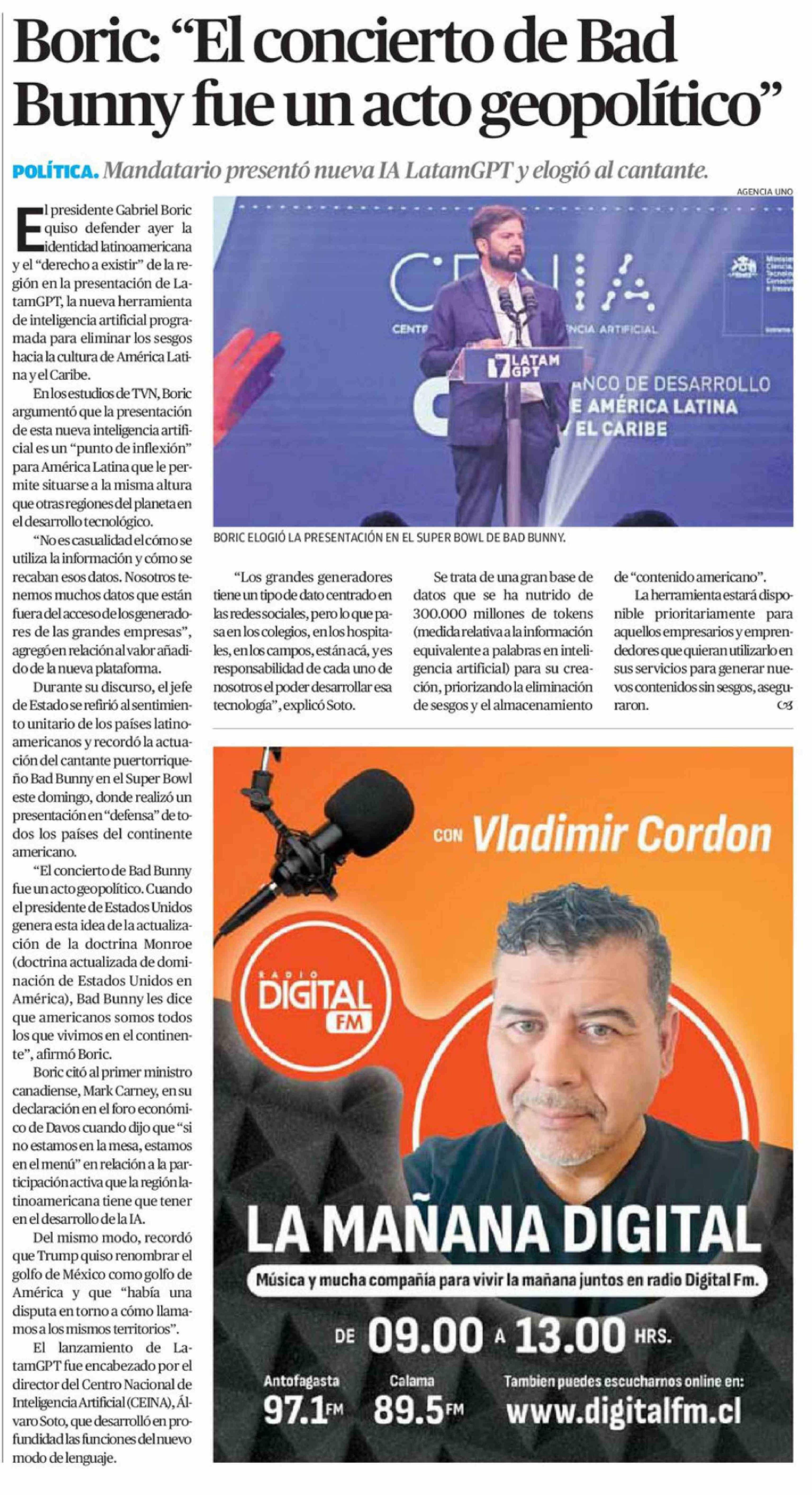 Título: Boric: "El concierto de Bad Bunny fue un acto geopolítico"