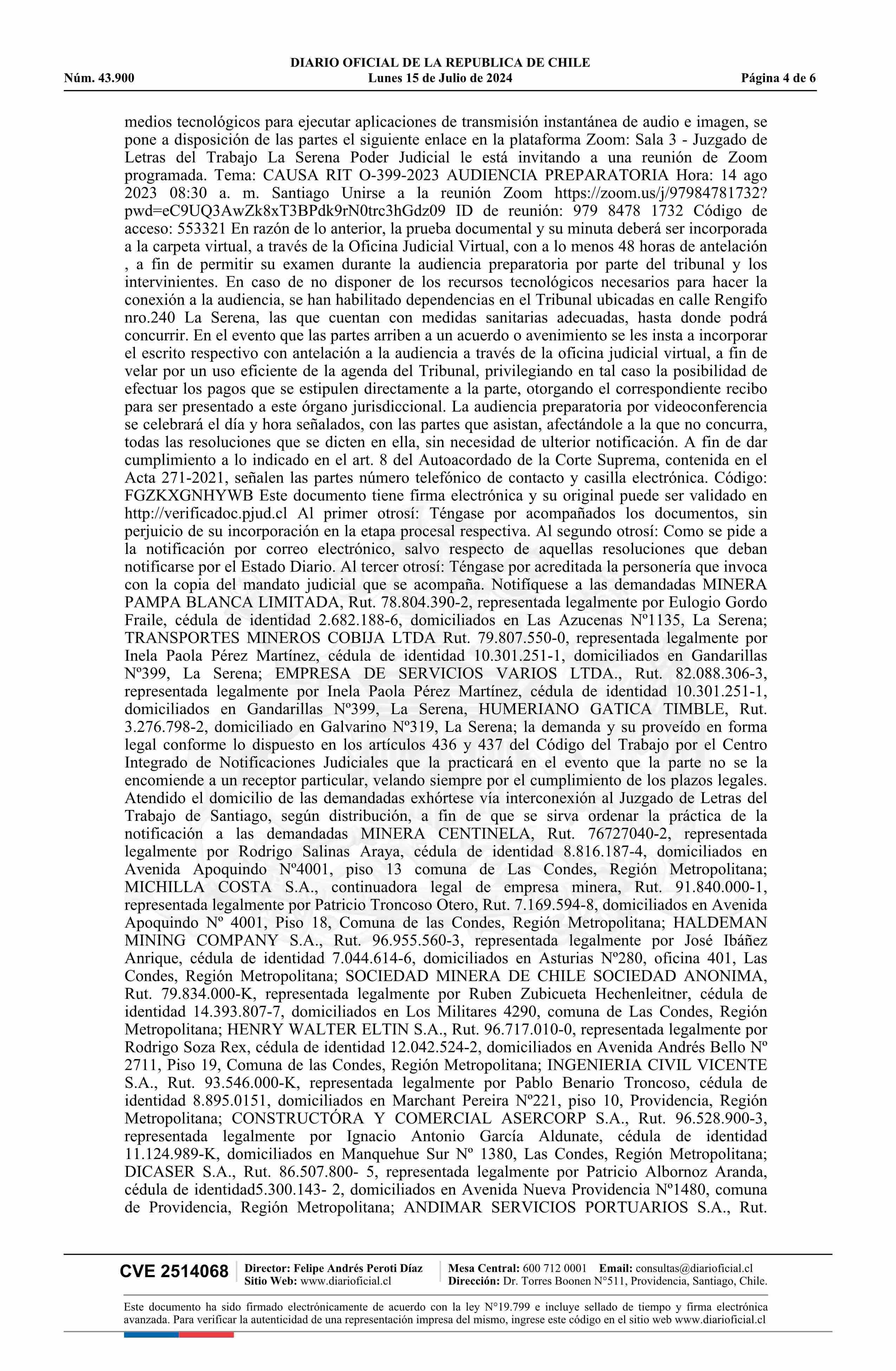 Álamos Rodríguez Richards Eduardo - Minera Centinela y otras 15-07-2024 Diario Oficial Edición Electrónica |