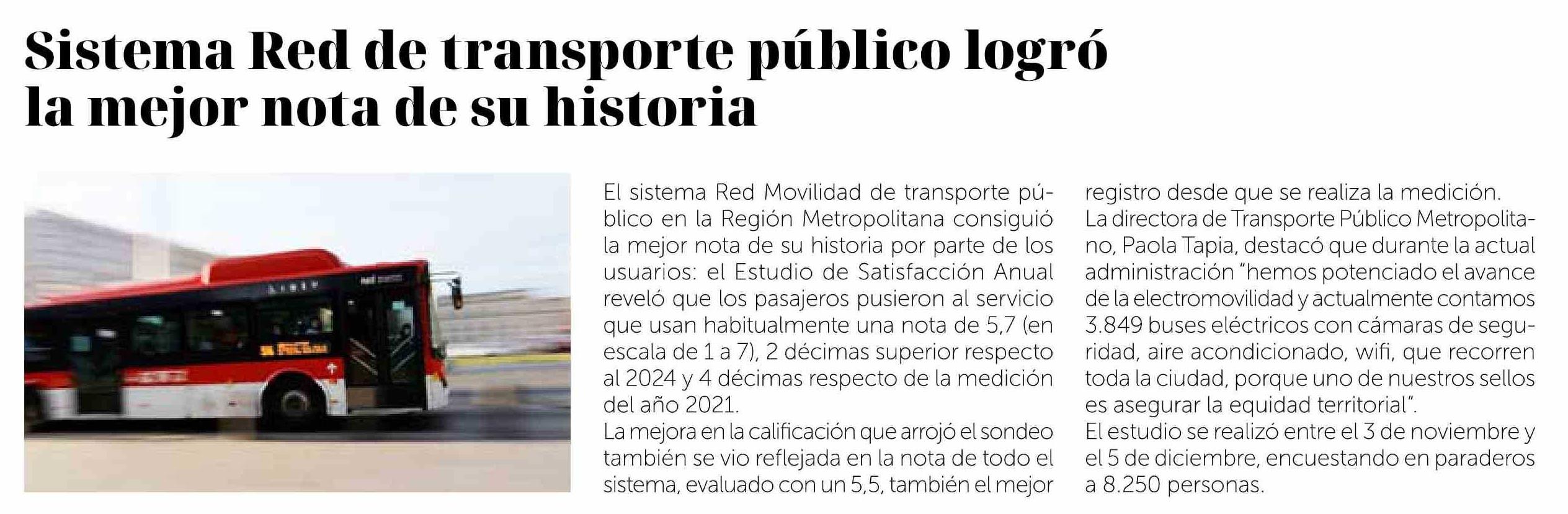 Título: Sistema Red de transporte público logró la mejor nota de su historia