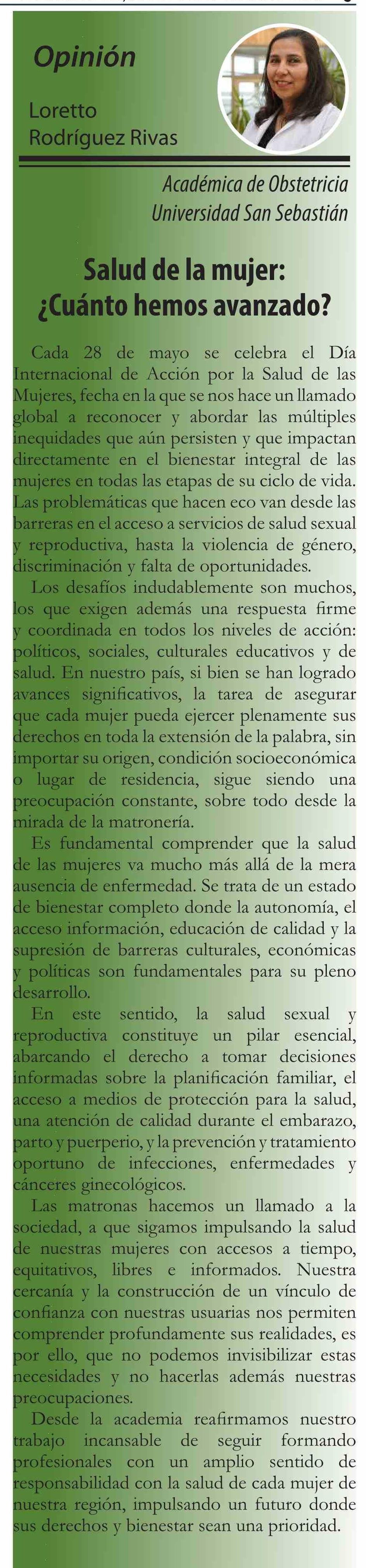Columnas de Opinión: Salud de la mujer: ¿Cuánto hemos avanzado? 20-05-2025 El Divisadero |