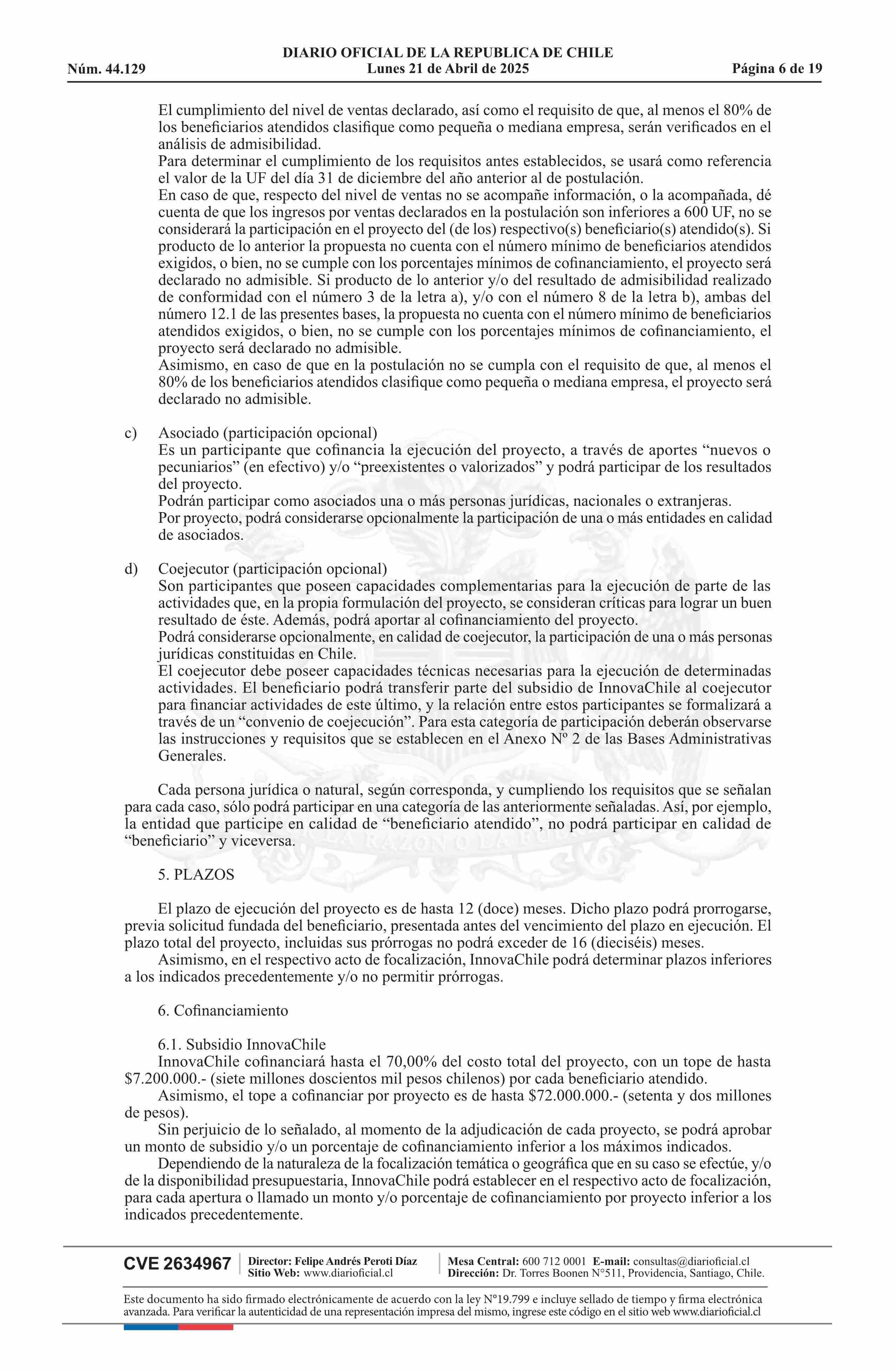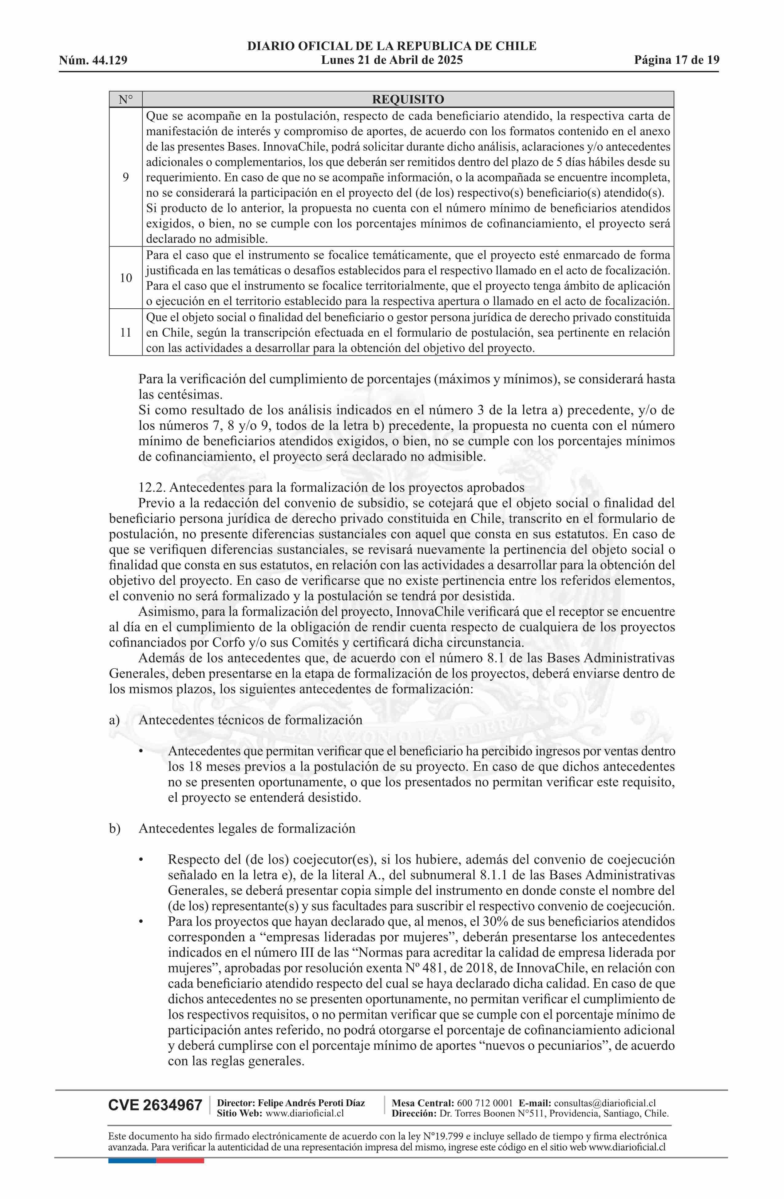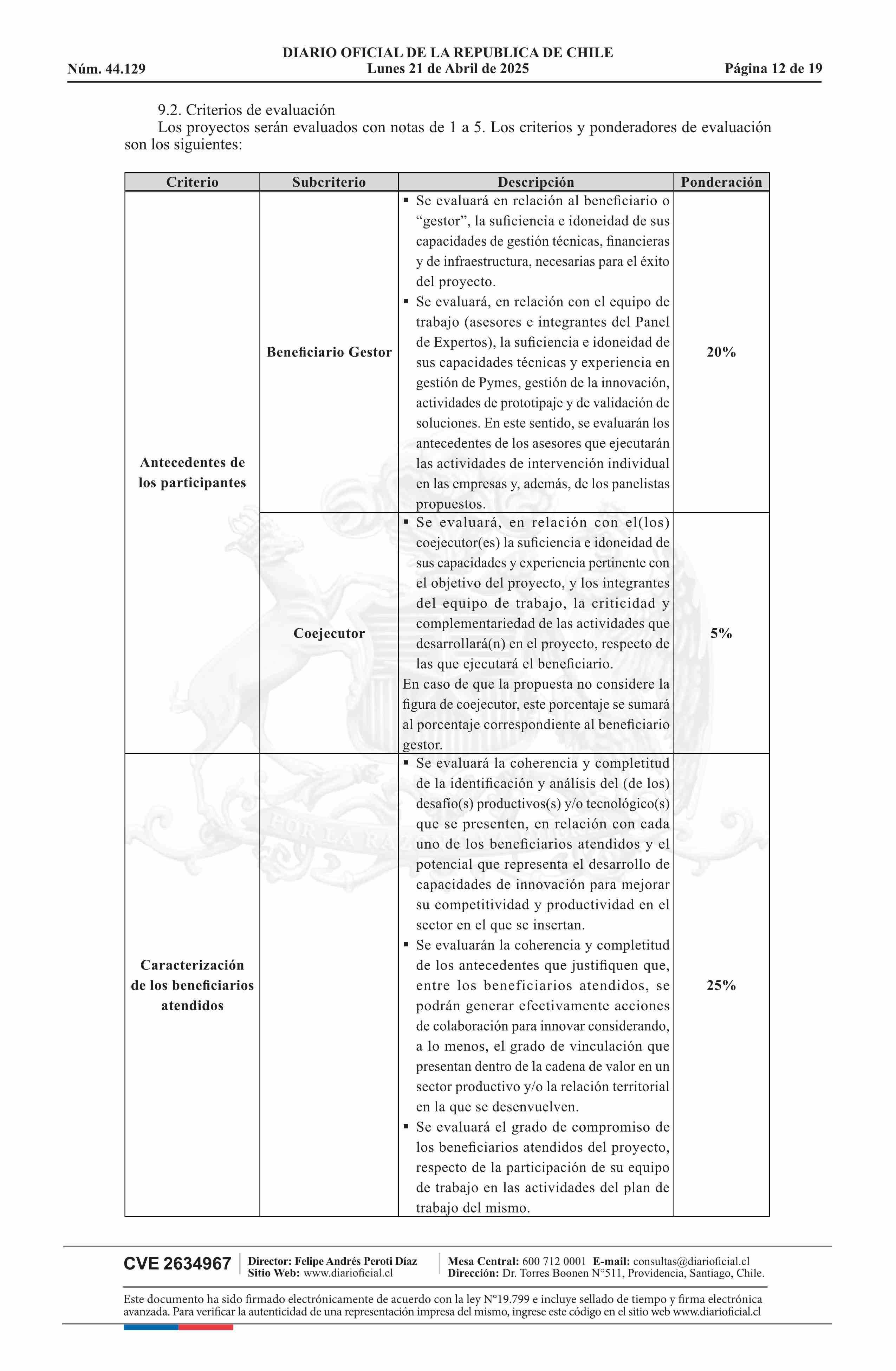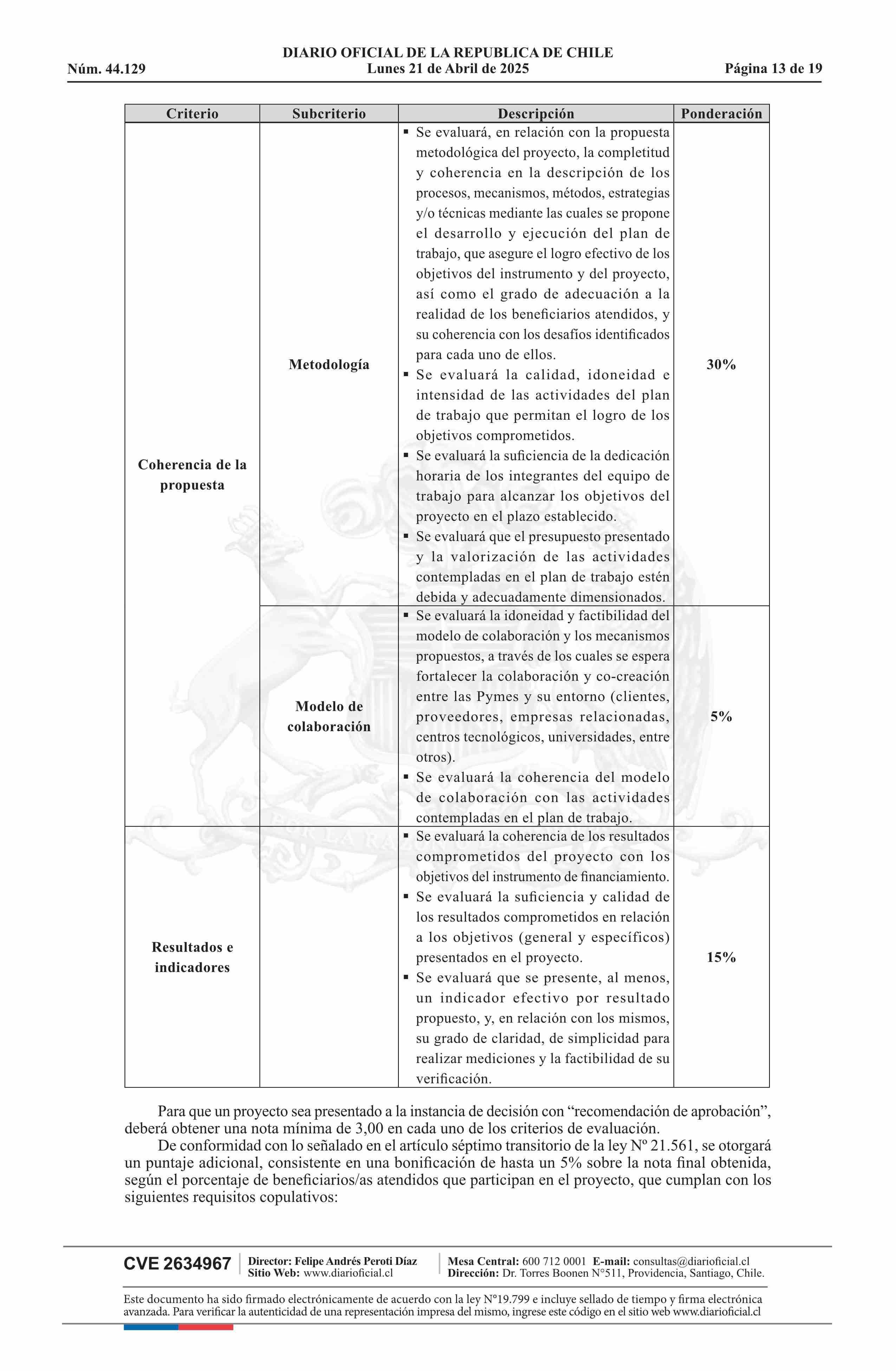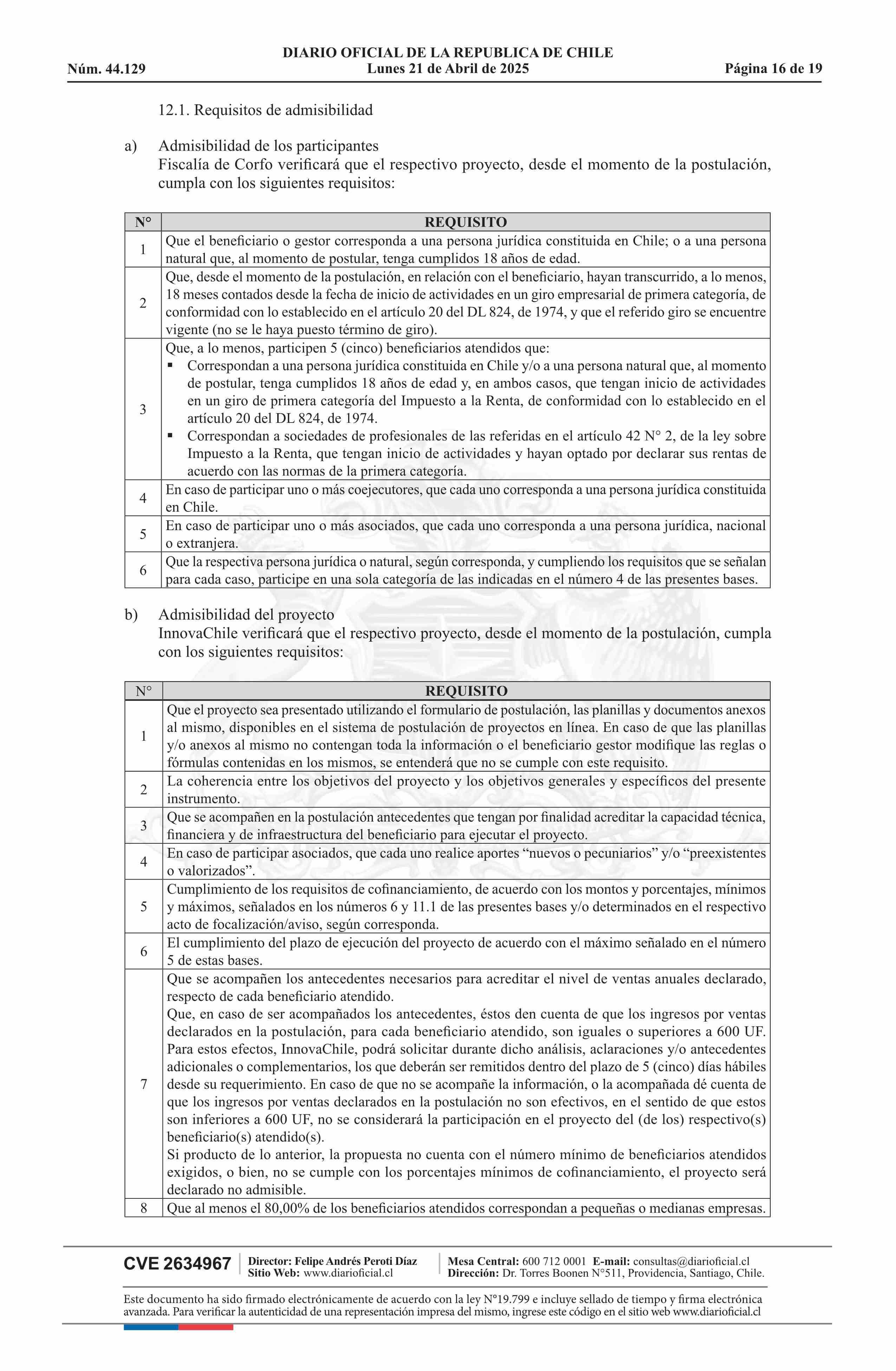 Resolución exenta número 125, de 2025.- Modifica instrumento de financiamiento denominado Gestión de Innovación en Pymes y aprueba nuevo texto de sus bases y su anexo 21-04-2025 DIARIO OFICIAL CHILE - BOLETÍN OFICIAL DE MINERÍA |