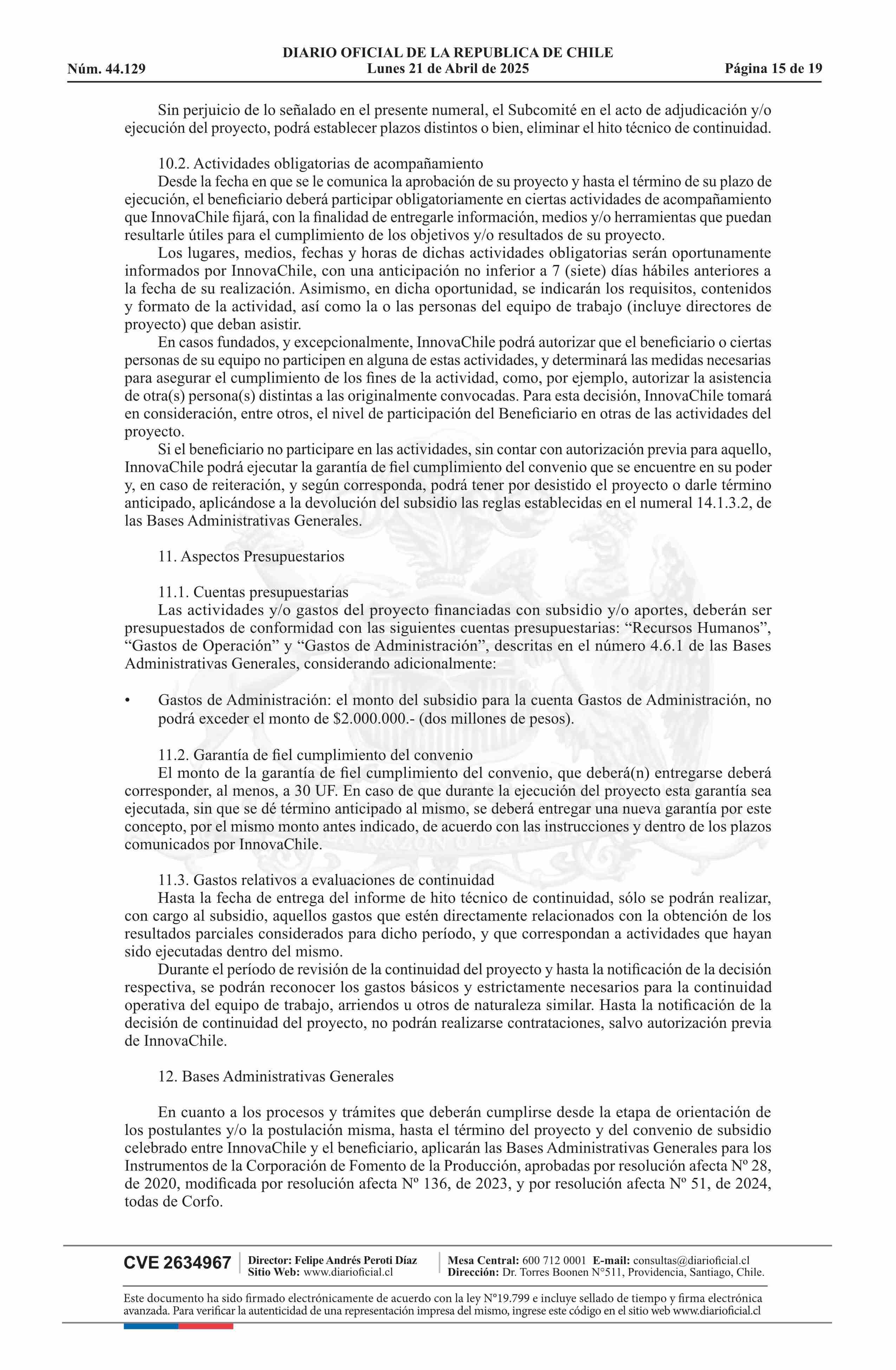 | Título: | Resolución exenta número 125, de 2025.- Modifica instrumento de financiamiento denominado Gestión de Innovación en Pymes y aprueba nuevo texto de sus bases y su anexo |
