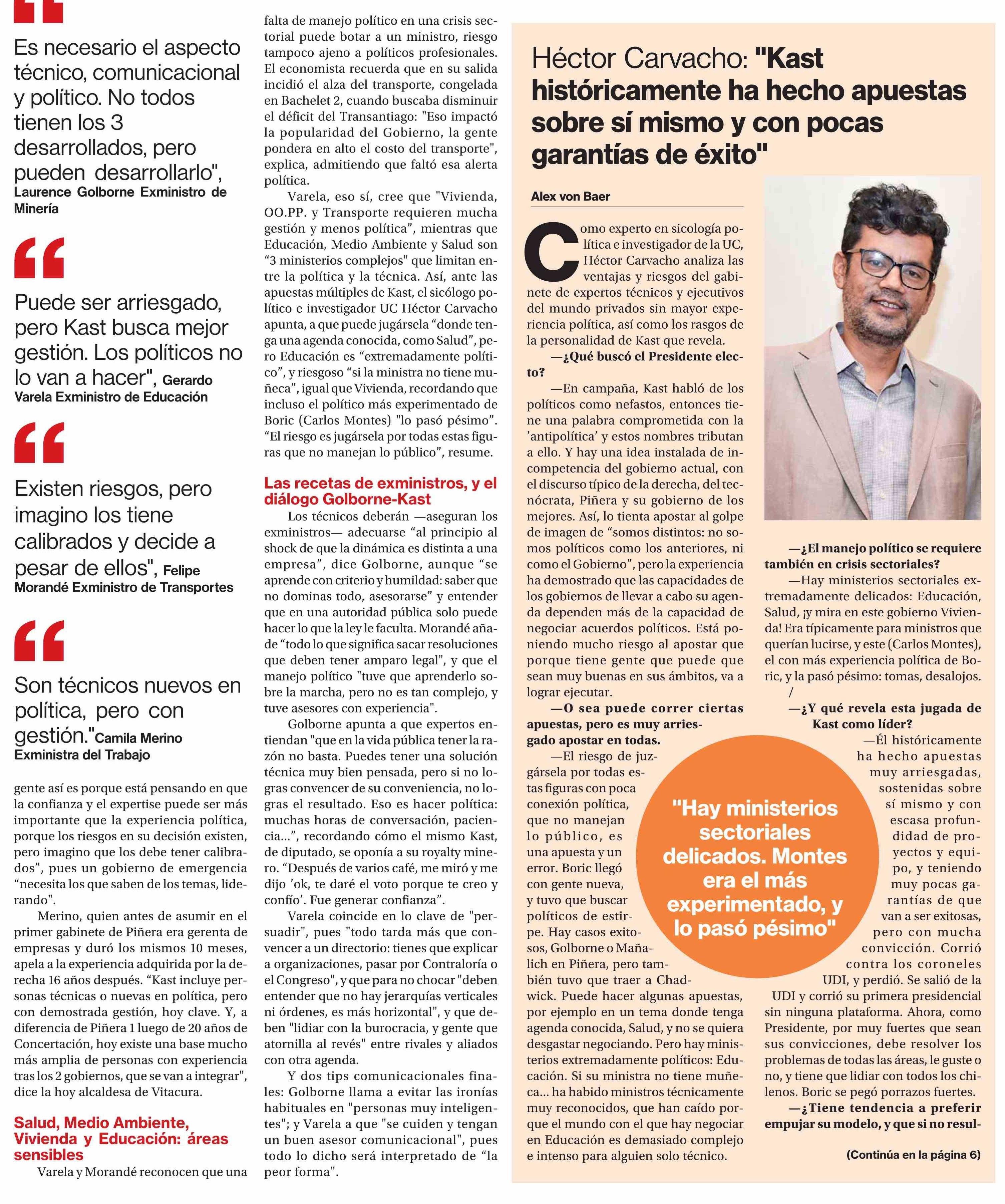 Título: Varela, Golborne, Merino y Morandé reconocen los riesgos de ser ministro "novato en política"