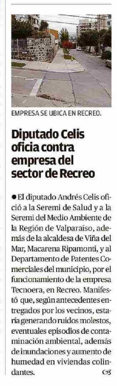 Título: Diputado Celis oficia contra empresa del sector de Recreo