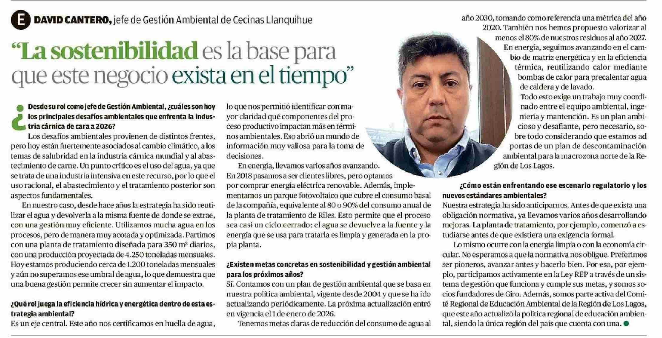 Columnas de Opinión: "La sostenibilidad es la base para que este negocio exista en el tiempo" 18-01-2026 El Llanquihue |