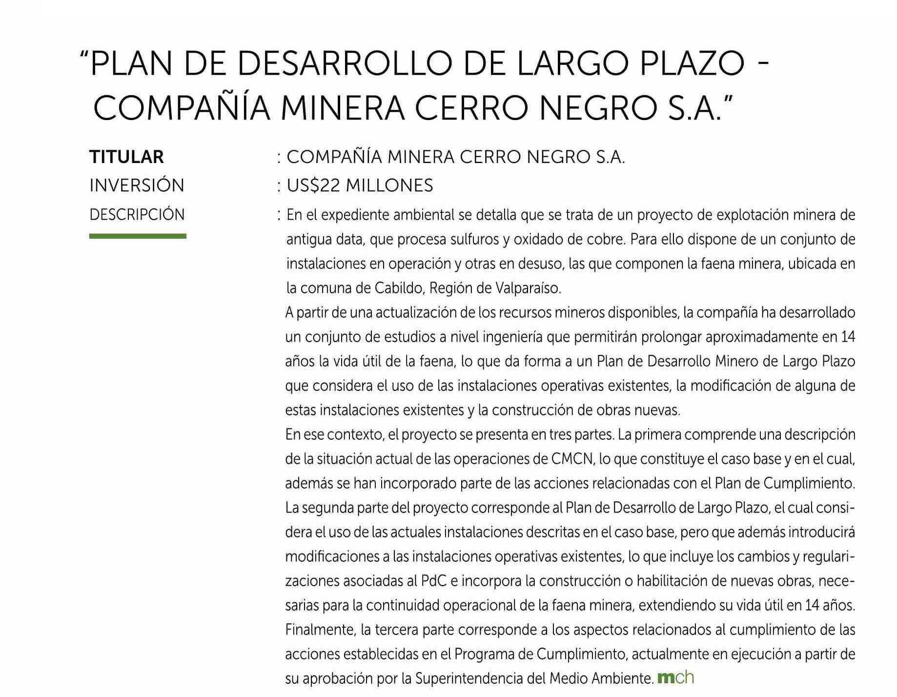 “PLAN DE DESARROLLO DE LARGO PLAZO COMPAÑÍA MINERA CERRO NEGRO S.A.” 19-02-2026 Revista Minería Chilena |