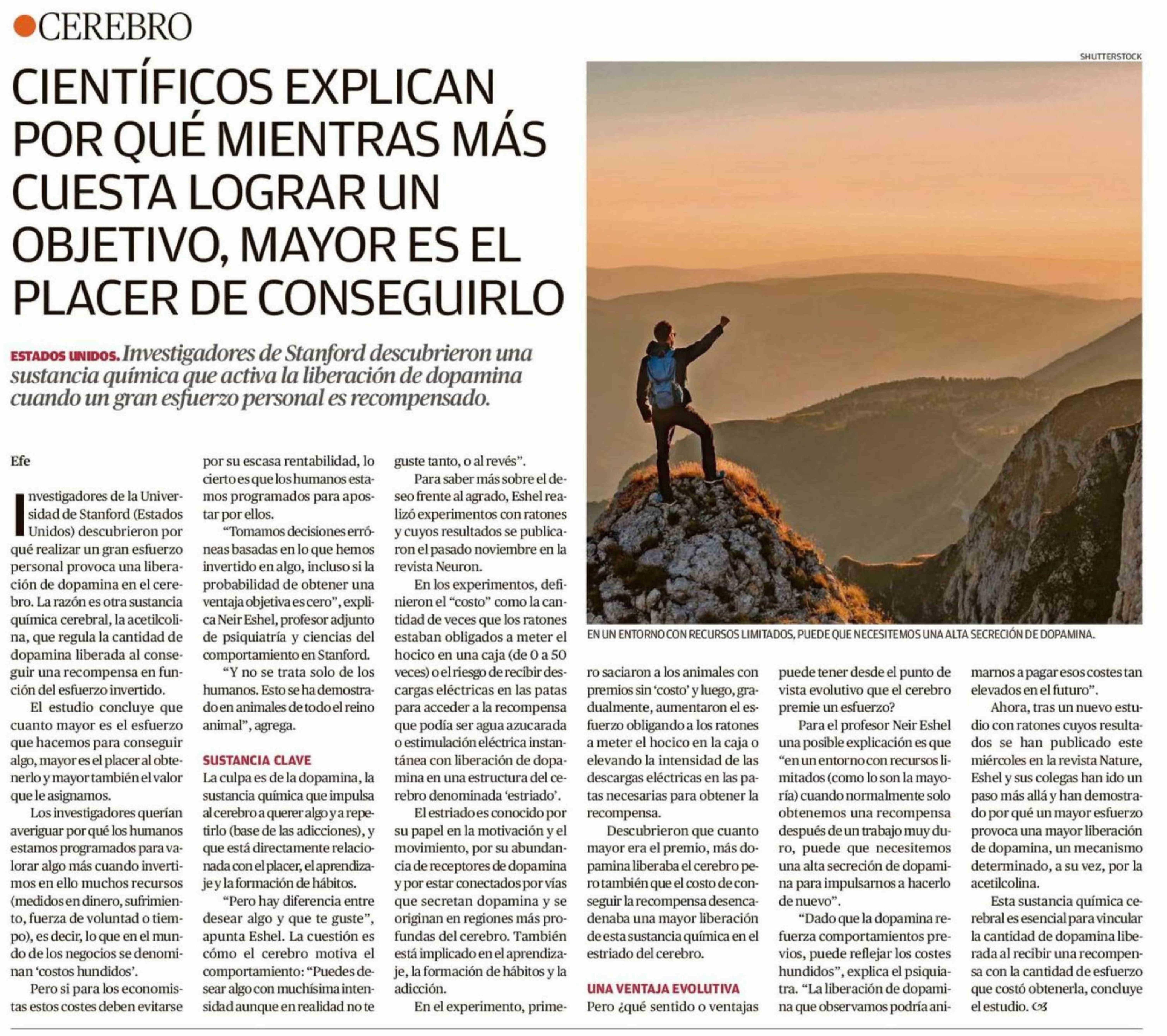 Título: CIENTÍFICOS EXPLICAN POR QUÉ MIENTRAS MÁS CUESTA LOGRAR UN OBJETIVO, MAYOR ES EL PLACER DE CONSEGUIRLO
