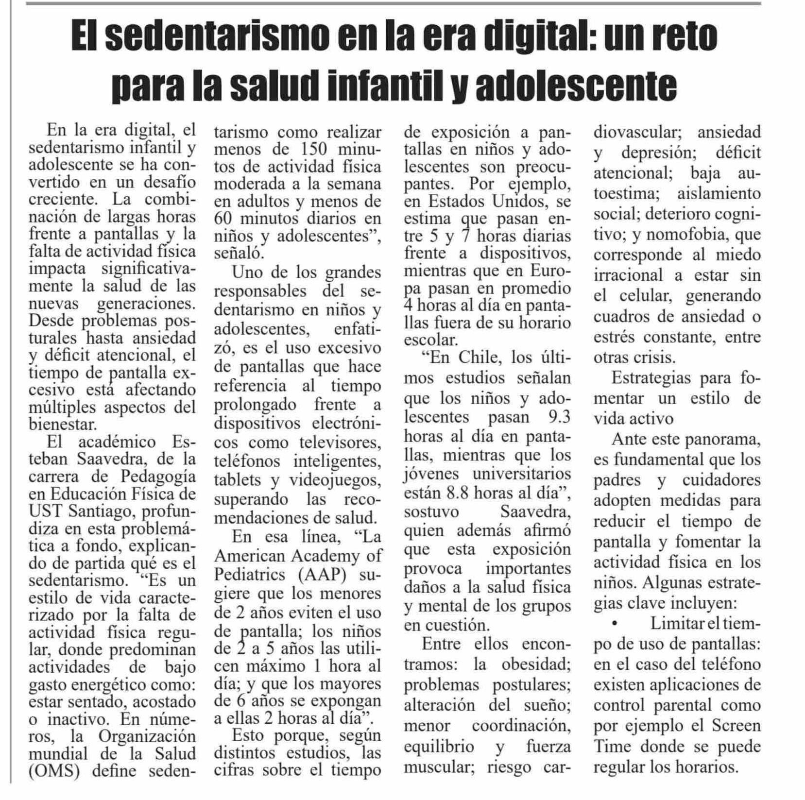 El sedentarismo en la era digital: un reto para la salud infantil y adolescente 30-05-2025 El Heraldo |
