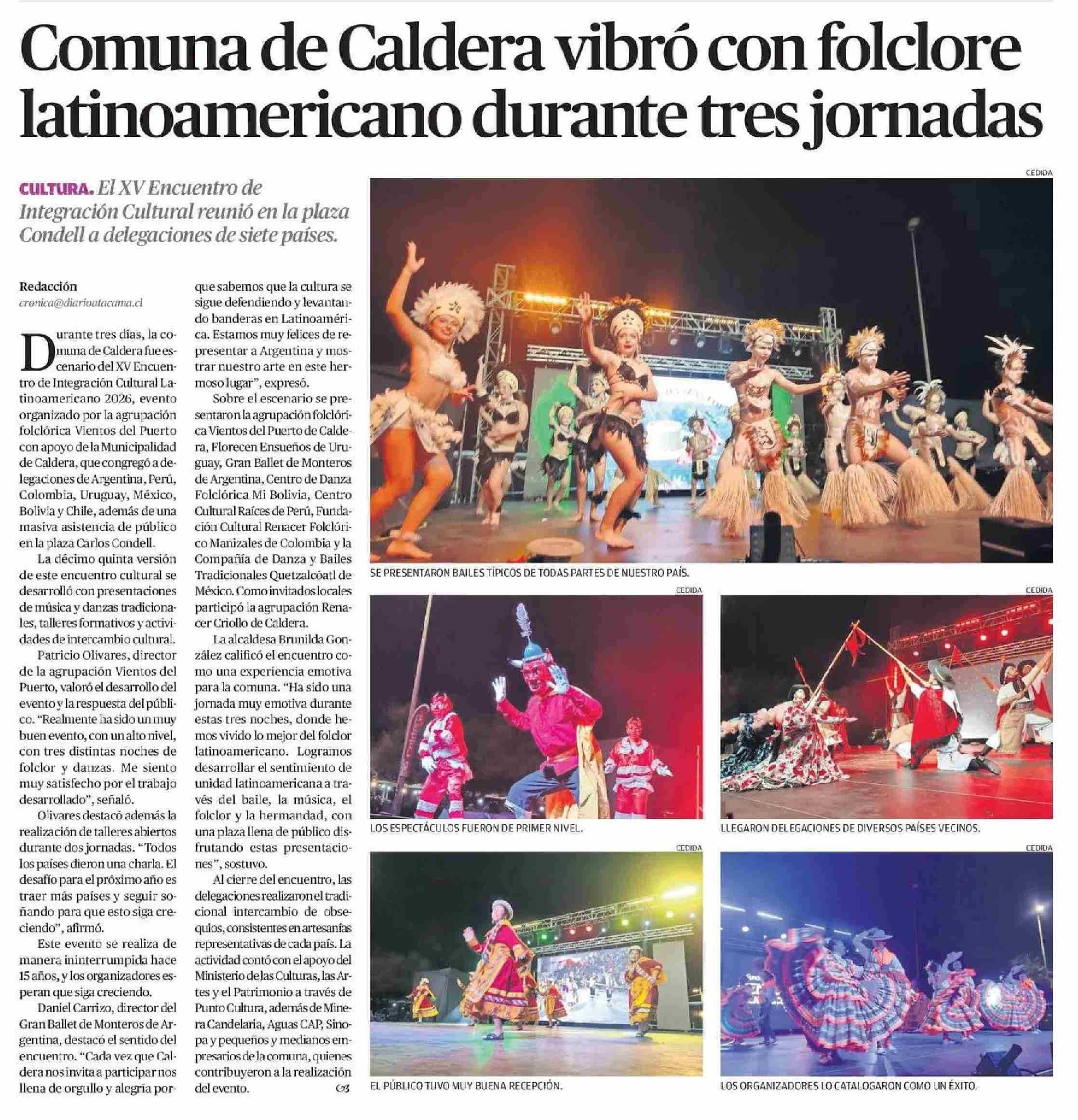 Comuna de Caldera vibró con folclore latinoamericano durante tres jornadas 19-01-2026 El Diario de Atacama |