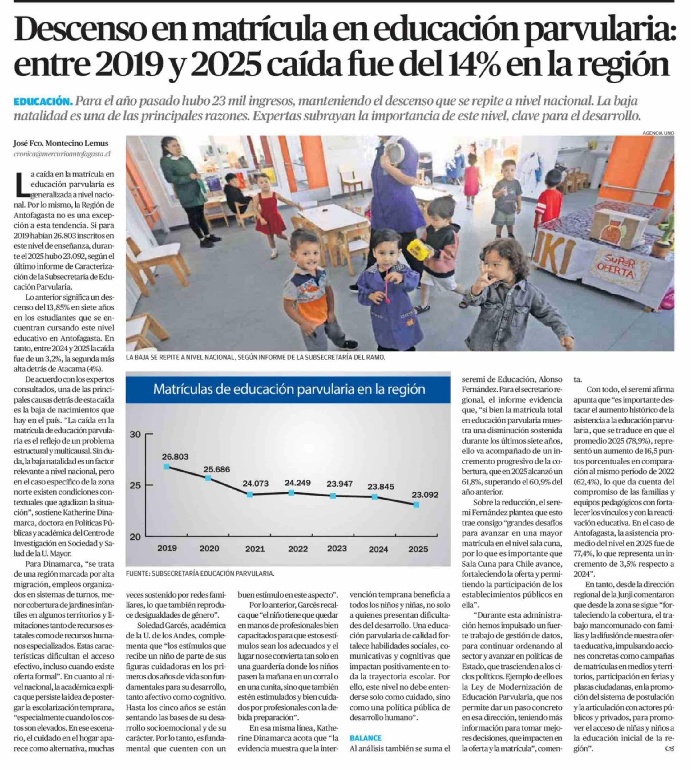 Título: Descenso en matrícula en educación parvularia: entre 2019 y 2025 caída fue del 14% en la región