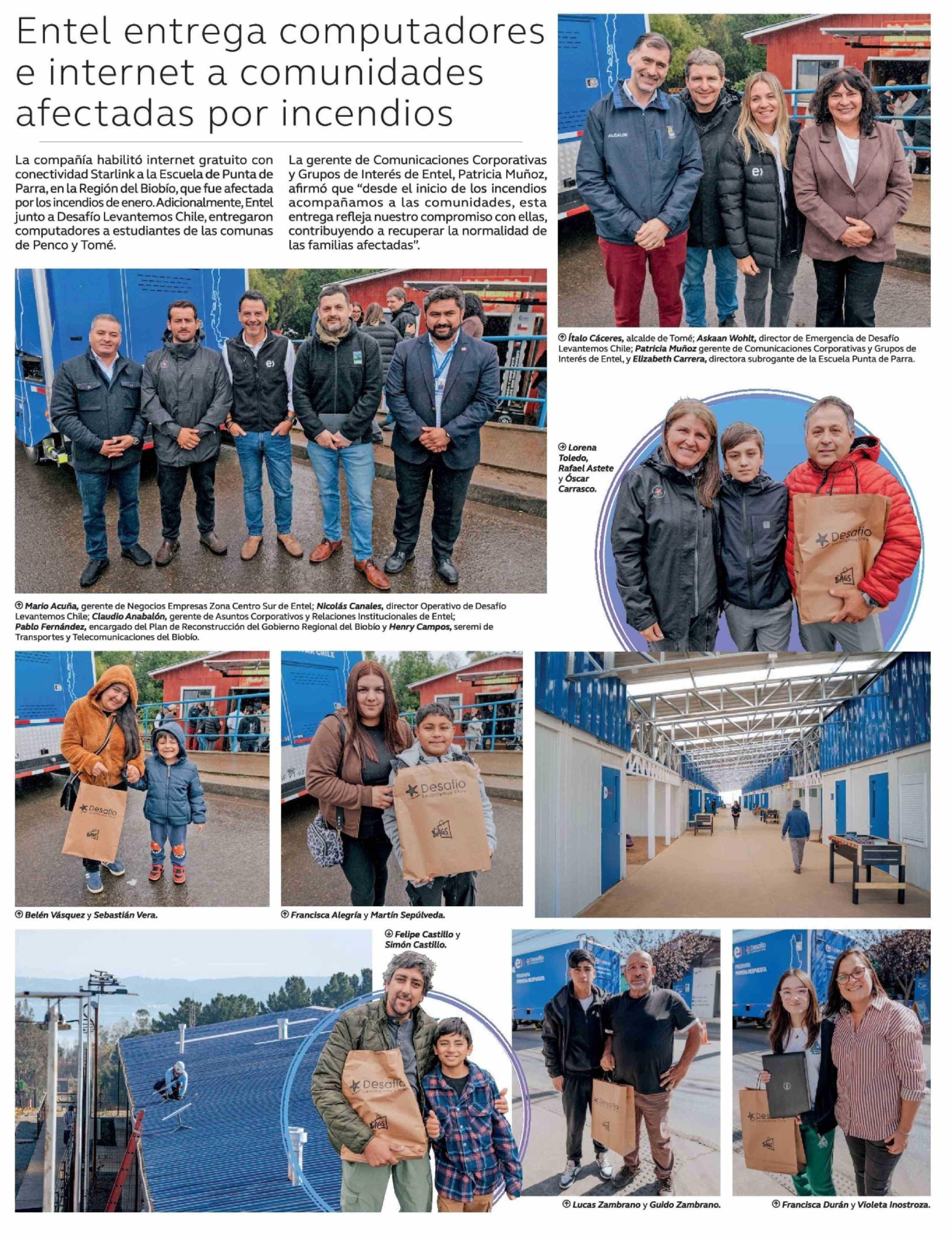 Entel entrega computadores e internet a comunidades afectadas por incendios 19-04-2026 La Tercera |