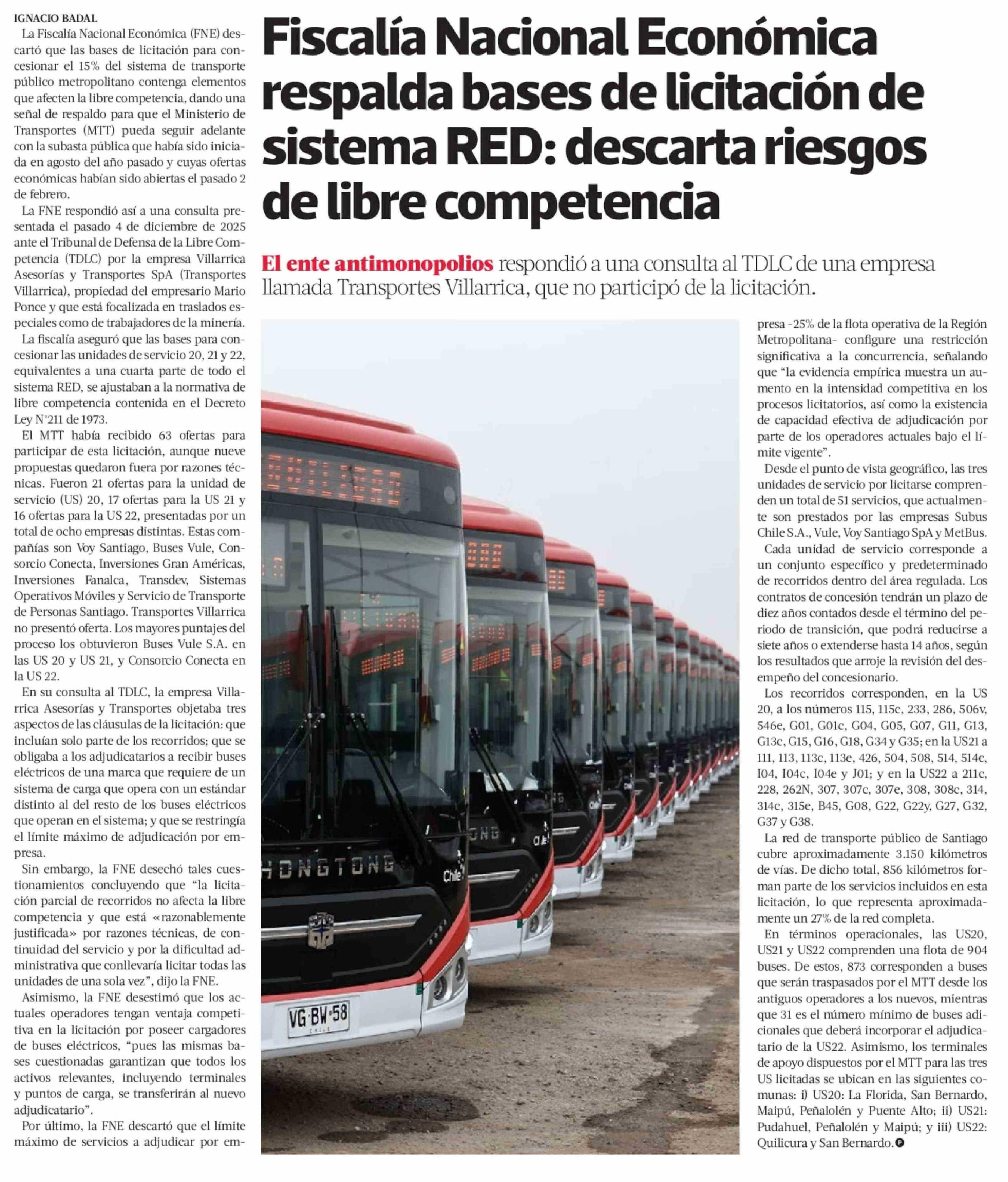Fiscalía Nacional Económica respalda bases de licitación de sistema RED: descarta riesgos de libre competencia 11-03-2026 La Tercera |