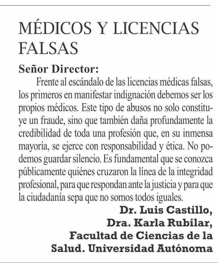 CARTAS: MÉDICOS Y LICENCIAS FALSAS