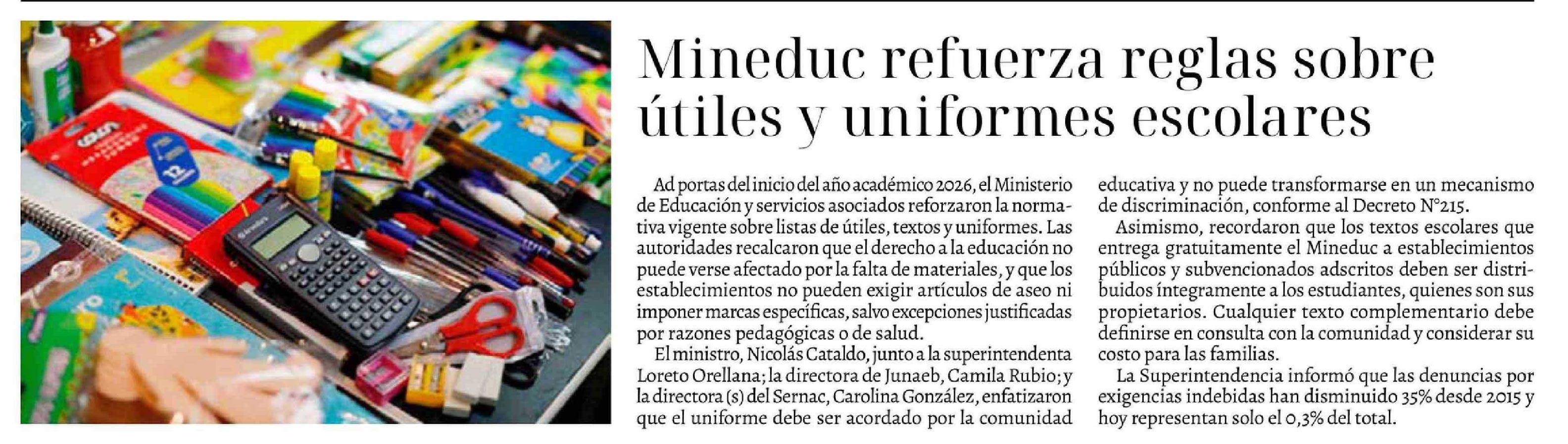 Mineduc refuerza reglas sobre útiles y uniformes escolares 21-02-2026 La Discusión |