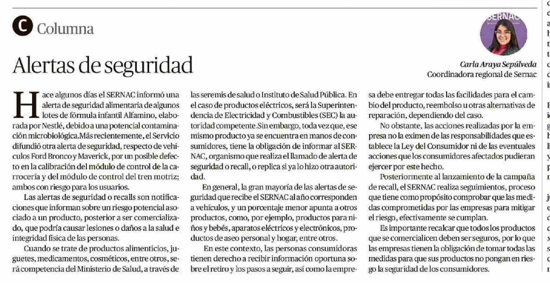 Columnas de Opinión: Alertas de seguridad 18-01-2026 Diario Austral Región de Los Ríos |