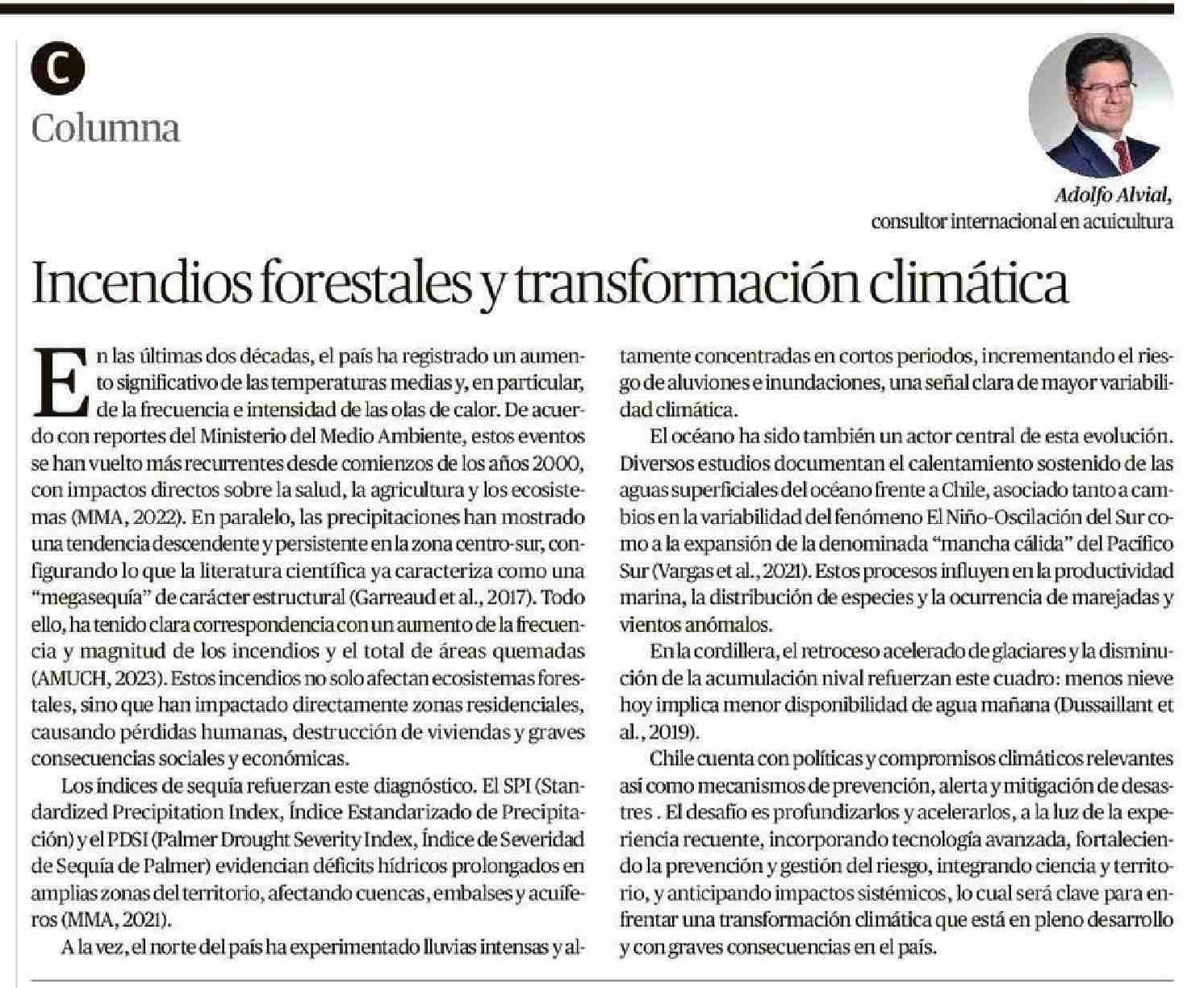 Columnas de Opinión: Incendios forestales y transformación climática 26-01-2026 El Llanquihue |