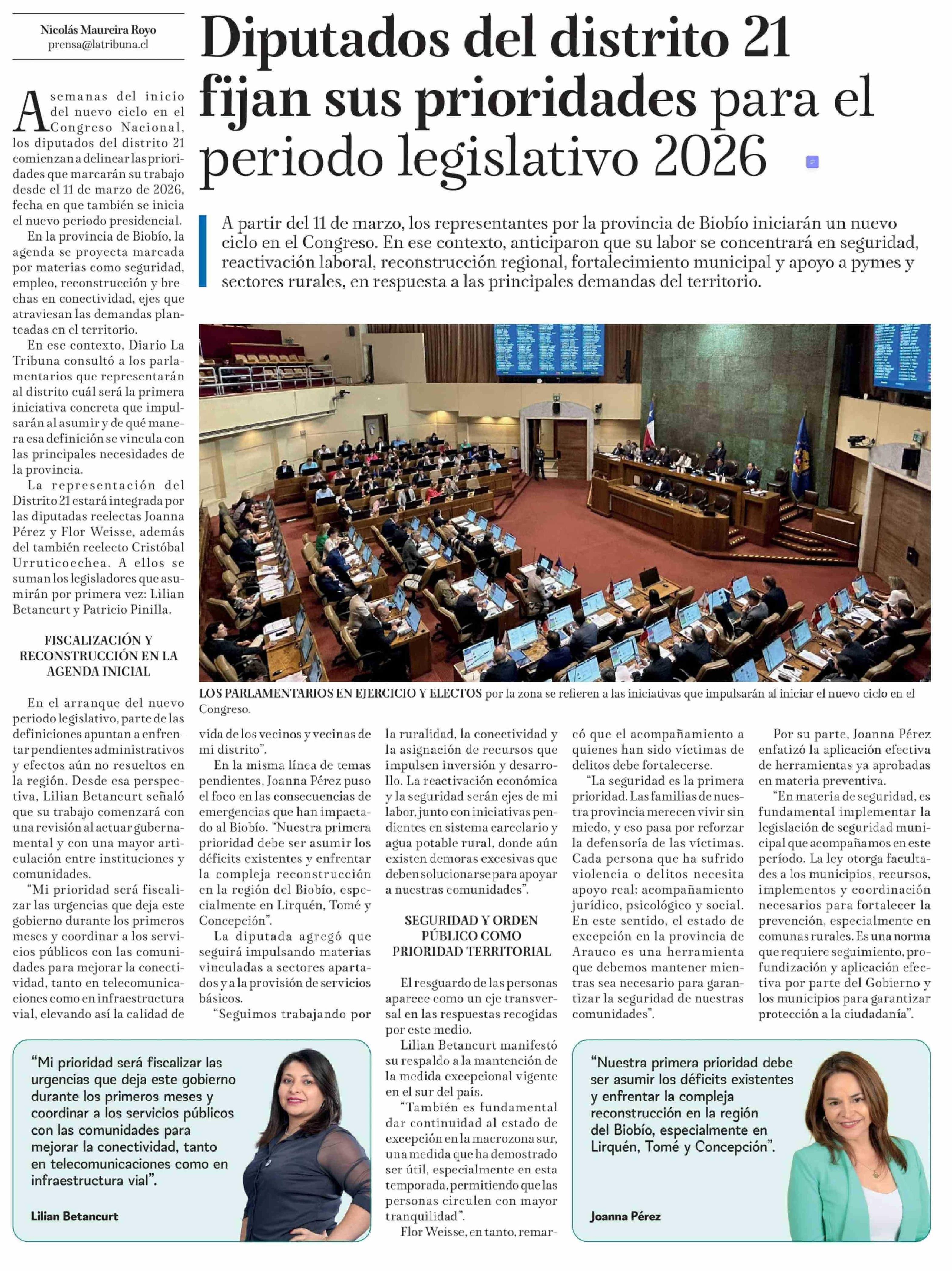 Diputados del distrito 21 fijan sus prioridades para el periodo legislativo 2026 23-02-2026 La Tribuna |