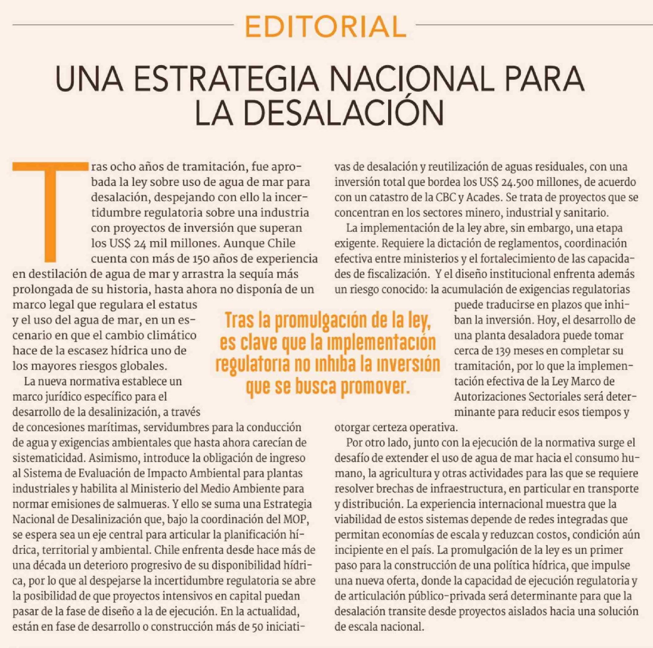 Título: Editorial: UNA ESTRATEGIA NACIONAL PARA LA DESALACIÓN
