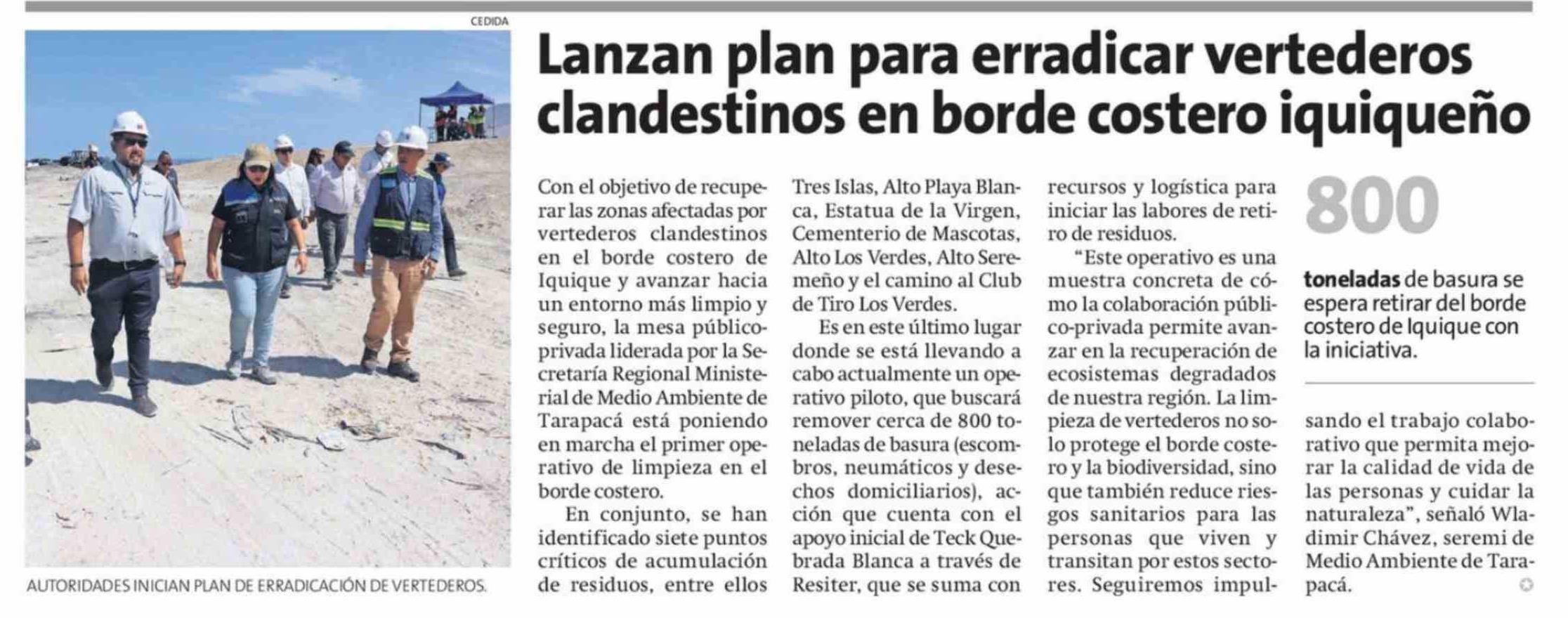 Título: Lanzan plan para erradicar vertederos clandestinos en borde costero iquiqueño